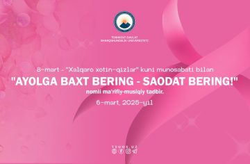 Muhtarama ustozlar va universitetimizning aziz xodimalari! Sizlarni 8-mart – «Xalqaro xotin-qizlar» kuni munosabati bilan o‘tkaziladigan &laq...