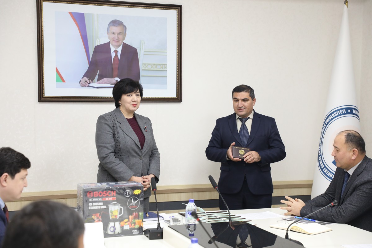 O‘zbekiston Respublikasi Vazirlar Mahkamasining 2019-yil 24-dekabrdagi “Ilm-fan va ta’lim sohasidagi davlat tashkilotlarida ilmiy, ilmiy-pedagogik va mehnat faoliyati bilan shug‘ullanuvchi ilmiy darajaga ega xodimlarga qo‘shimcha haq to‘lash tartibi to‘g‘risida”gi 1030-sonli qaroriga binoan TDSHU ilmiy darajali professor-o‘qituvchilari va xodimlarining lavozim maoshiga qo‘shimcha haq to‘lash bo‘yicha taqdimnomalarni ko‘rib chiqish, shuningdek, magistratura mutaxassisliklariga 2025/2026 o‘quv yilida qo‘shimcha o‘qishga qabul qilinganlar uchun taqdim qilingan mavzularni bazaga kiritish, ularni talabalarga biriktirish va ilmiy rahbarlarini tasdiqlash bo’yicha so’z yuritildi.