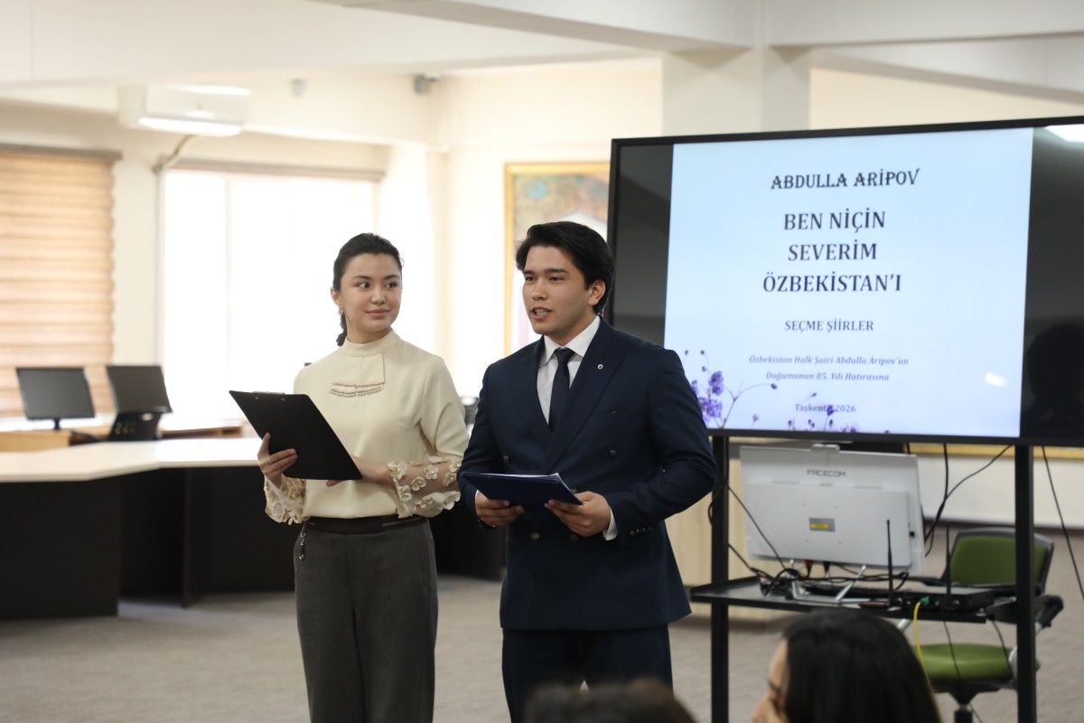 2026-yil 11-mart kuni Toshkent davlat sharqshunoslik universitetida O‘zbekiston Qahramoni, xalq shoiri Abdulla Oripov tavalludining 85 yilligiga bag‘ishlangan “BEN NİÇİN SEVERİM ÖZBEKİSTAN’I” nomli turk tilidagi tarjima asar taqdimoti hamda davra suhbati bo‘lib o‘tdi.
