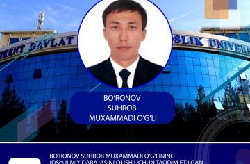 Bo‘ronov Suhrob Muxammadi o‘g‘lining 23.00.04 – «Xalqaro munosabatlar, jahon va mintaqa taraqqiyotining siyosiy muammolari» ixtisosligi bo‘yicha “Markaziy Osiyo mintaqaviy xavfsizlik transformatsiyasi sharoitida “Tolibon” omili” mavzusida siyosiy fanlar doktori (DSc) ilmiy darajasini olish uchun taqdim etilgan dissertatsiyasi himoyasi 📅 2025-yil 5-iyul ⏰ Soat 10:00...