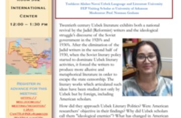 Ma’lum qilamizki, 2021-yil 12-noyabr soat 10:00 da AQSHning Michigan davlat universiteti (Michigan State University) da “Oʻzbek adabiy siyosati Amerika olimlari kontekstida. Tahlil, talqin va mulohaza” (Uzbek Literary Politics in the Context of American scholars: Analyses, Interpretation and Discourse) mavzusida ochiq ma’ruza boʻlib oʻtadi. Ma’ruzada ToshDOʻTAU huzuridagi PKQTMO...
