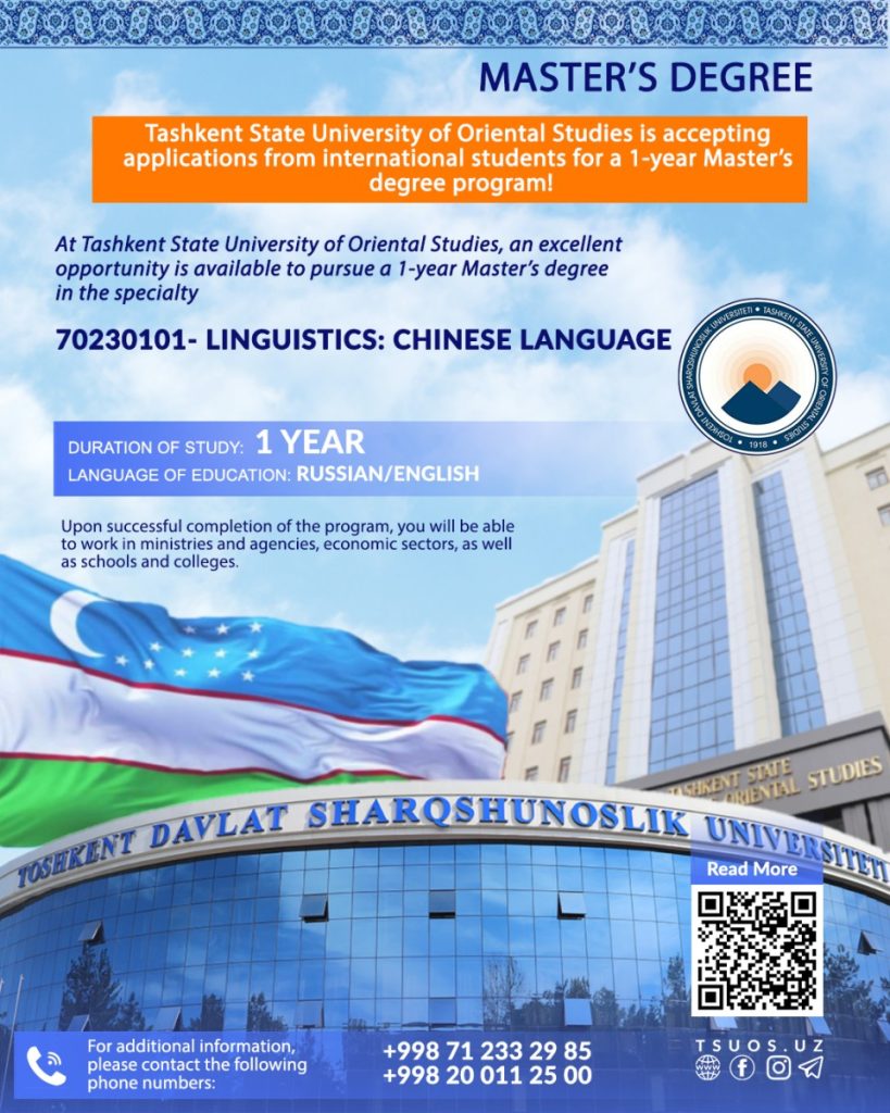 At Tashkent State University of Oriental Studies, an excellent opportunity is available to pursue a 1-year Master’s degree in the specialty