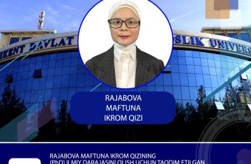 Defense of the dissertation submitted by Maftuna Ikrom qizi Rajabova for the degree of Doctor of Philosophy (PhD) in Political Sciences, specializing in 23.00.04 – International relations, political problems of world and regional development on the topic “Trends in the Development of the Tolerance Factor in the Contemporary System of International Relations (A Case Study of the Republic of Korea a...