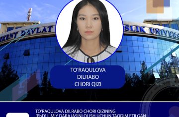 Defense of the dissertation submitted by Dilrabo Chori qizi To‘raqulova for the degree of Doctor of Philosophy (PhD) in Philological Sciences, specializing in 10.00.06 – Comparative Literary Studies, Contrastive Linguistics, and Translation Studies, on the topic “Translation of Non-Equivalent Lexis in Uzbek Short Stories into Korean” The defense will take place on December 25, 2025, at 10:00....