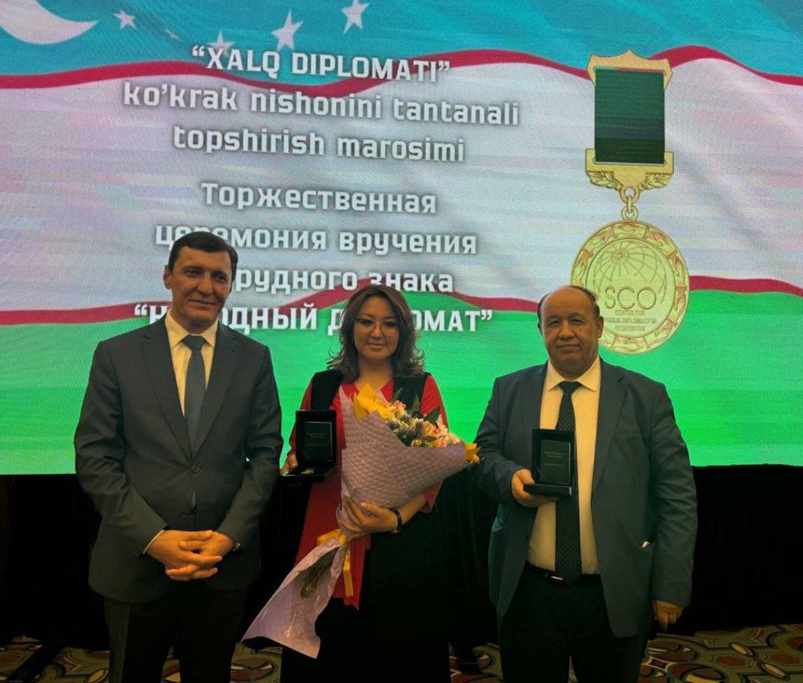 Professor Sayfiddin Juraev and Associate Professor Nilufar Khodjaeva, Head of the Department at Tashkent State University of Oriental Studies (TSUOS), were awarded the “People’s Diplomat” badge by the Shanghai Cooperation Organization’s Center for Public Diplomacy in Uzbekistan.