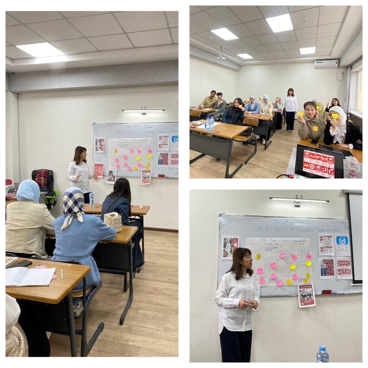 On November 4, 2024, Nargiza Fuzaylova, a lecturer at the Department of Western Languages of Tashkent State University of Oriental Studies, conducted a project-based lesson dedicated to Sustainable Development Goal 4 – Quality Education.
