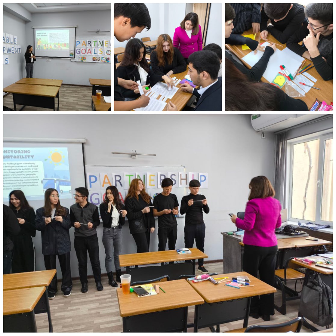 On November 14, 2024, English language teacher Komilova Dildora conducted a project lesson for second-year students of the History (Japanese/Korean language) program on the topic “SDG17 – Partnerships for the Goals.”