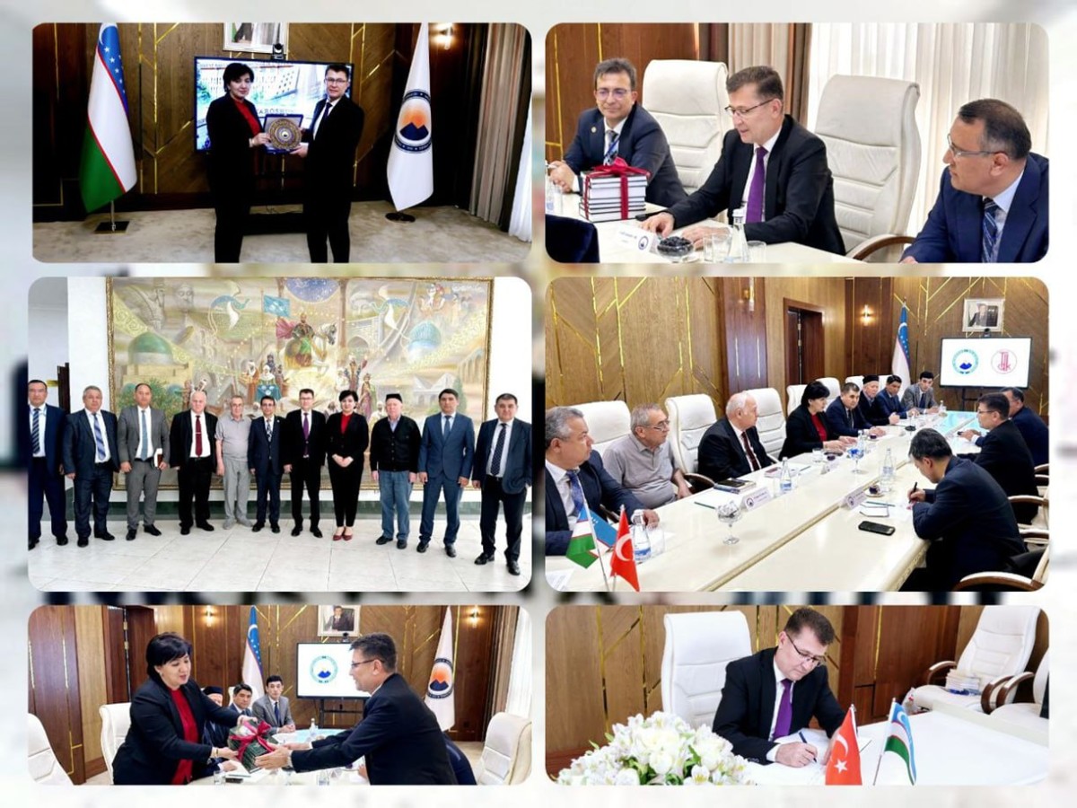 On May 11, 2024, Tashkent State University of Oriental Studies hosted a delegation from the Republic of Türkiye, including Prof. Osman Mert, Chair of the Turkish Language Association (Türk Dil Kurumu), and professors Veli Savaş Yelok and Zaynobiddin Abdurashidov from Ankara Hacı Bayram Veli University.