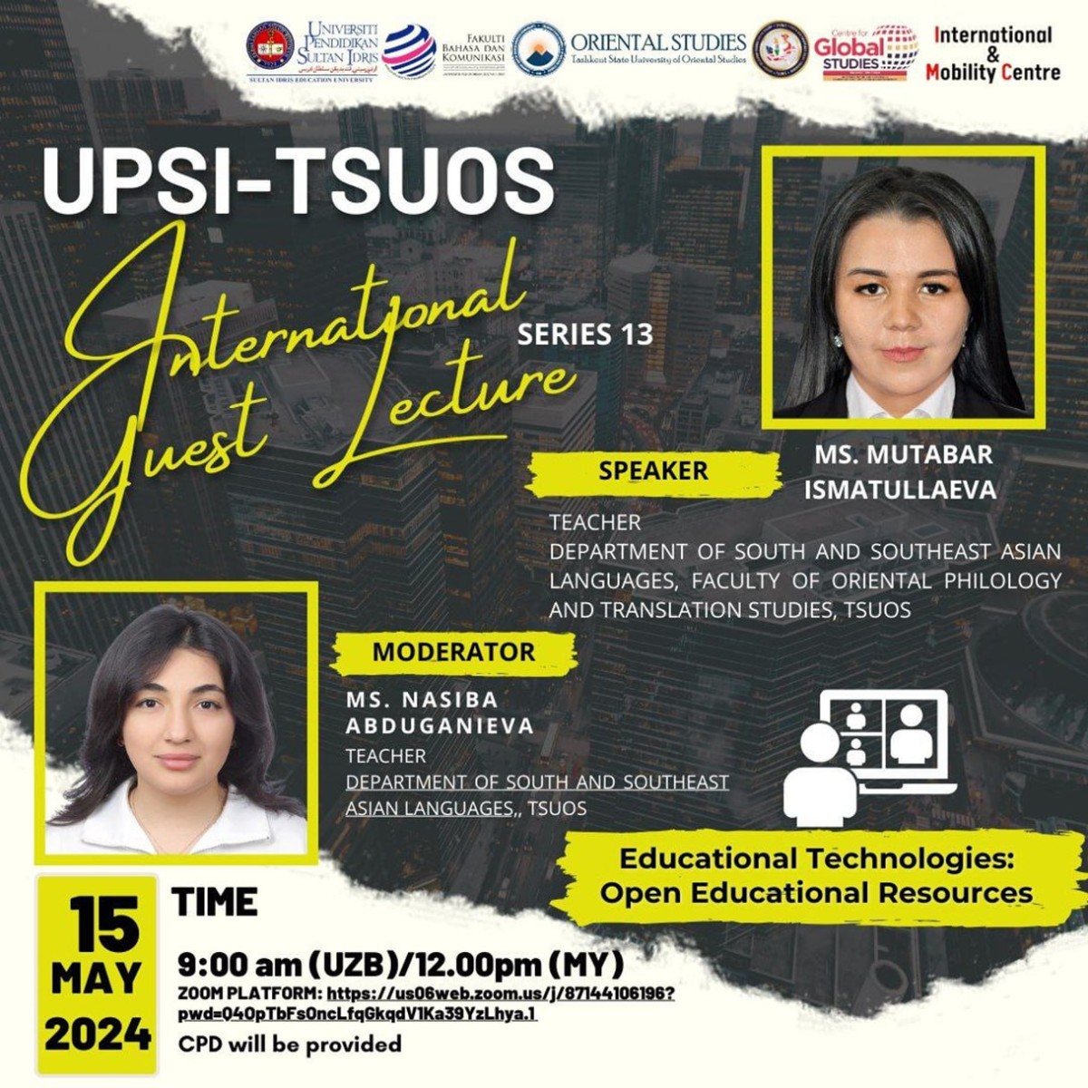 - Speaker: Mutabar Ismatullaeva – Lecturer at the Department of South and Southeast Asian Languages, specialist in open educational resources and digital learning environments