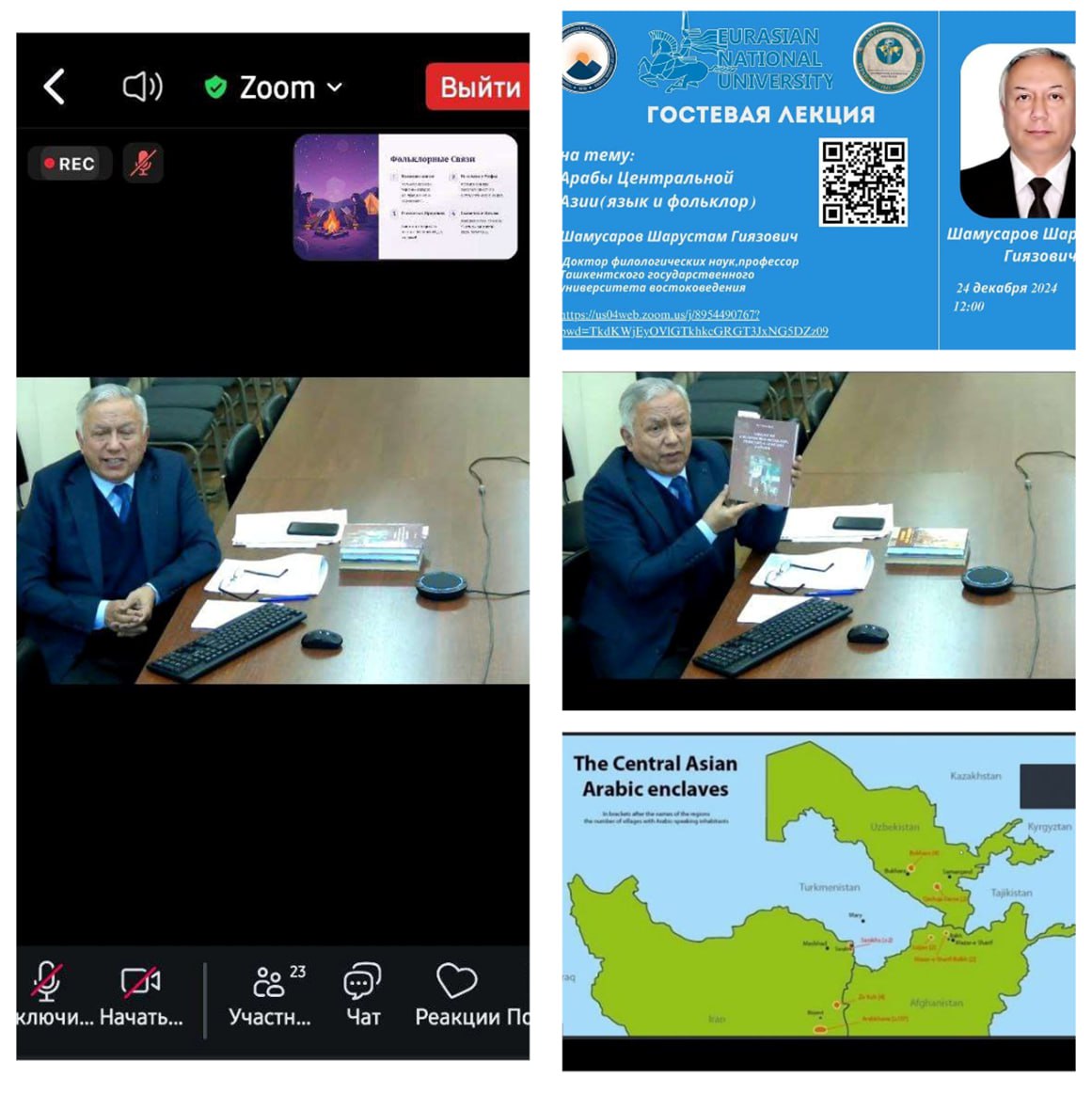 On December 24, 2024, Professor Shorustam Shomusarov, Doctor of Philology and faculty member at the Higher School of Arab Studies of Tashkent State University of Oriental Studies, delivered a scientific online lecture on the topic “Arabs of Central Asia: Language and Folklore” at L.N. Gumilyov Eurasian National University in the Republic of Kazakhstan.