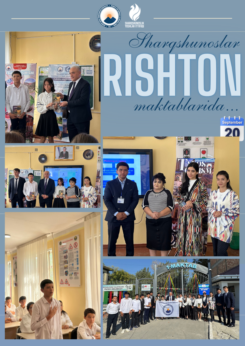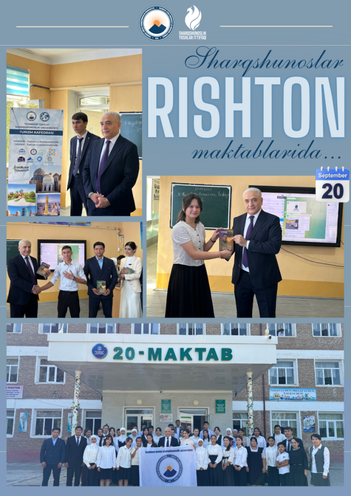 On September 20, 2025, a working group from the Tashkent State University of Oriental Studies organized a roundtable discussion and a quiz at School No. 20 in Rishton district. The event aimed to widely promote the tourism sector and to familiarize the younger generation with national values and the region’s tourism potential.