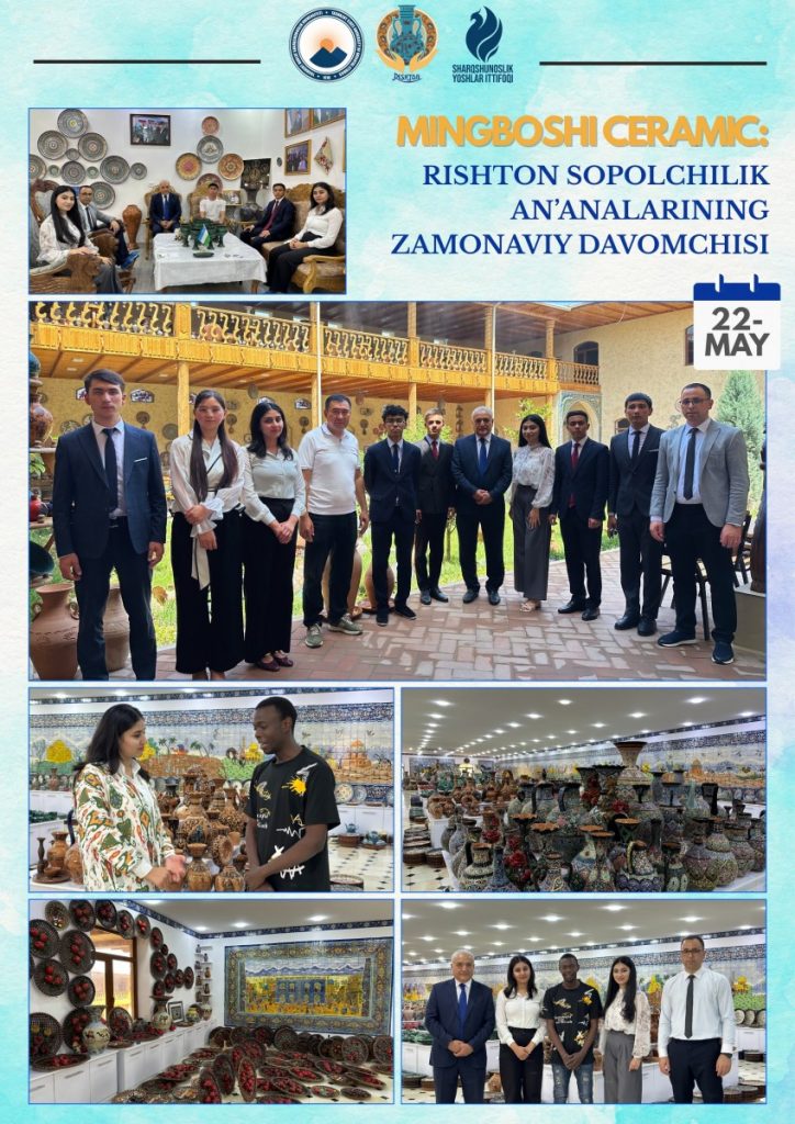On May 22 of this year, members of the tourism working group of Tashkent State University of Oriental Studies visited the famous family enterprise “Mingboshi Ceramic,” located in the Rishtan district of Fergana region.
