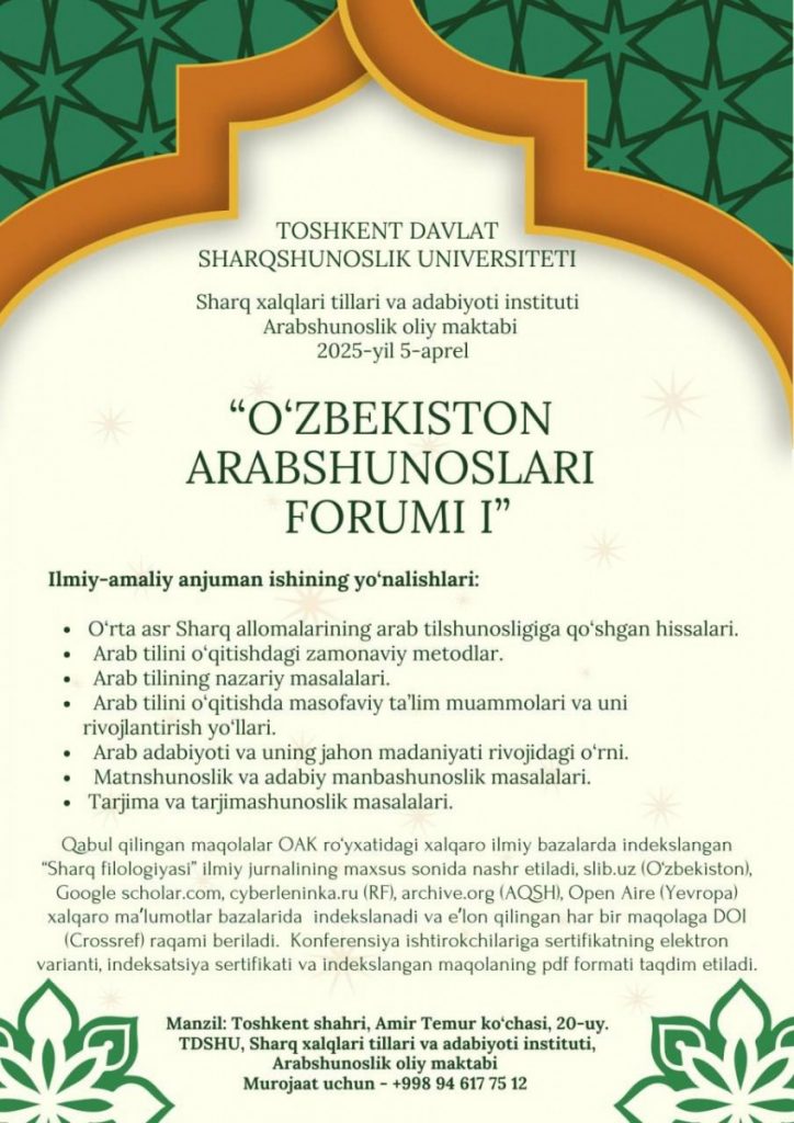 (Uzbek) «O‘zbekiston arabshunoslari forumi I» respublika ilmiy-amaliy anjuman