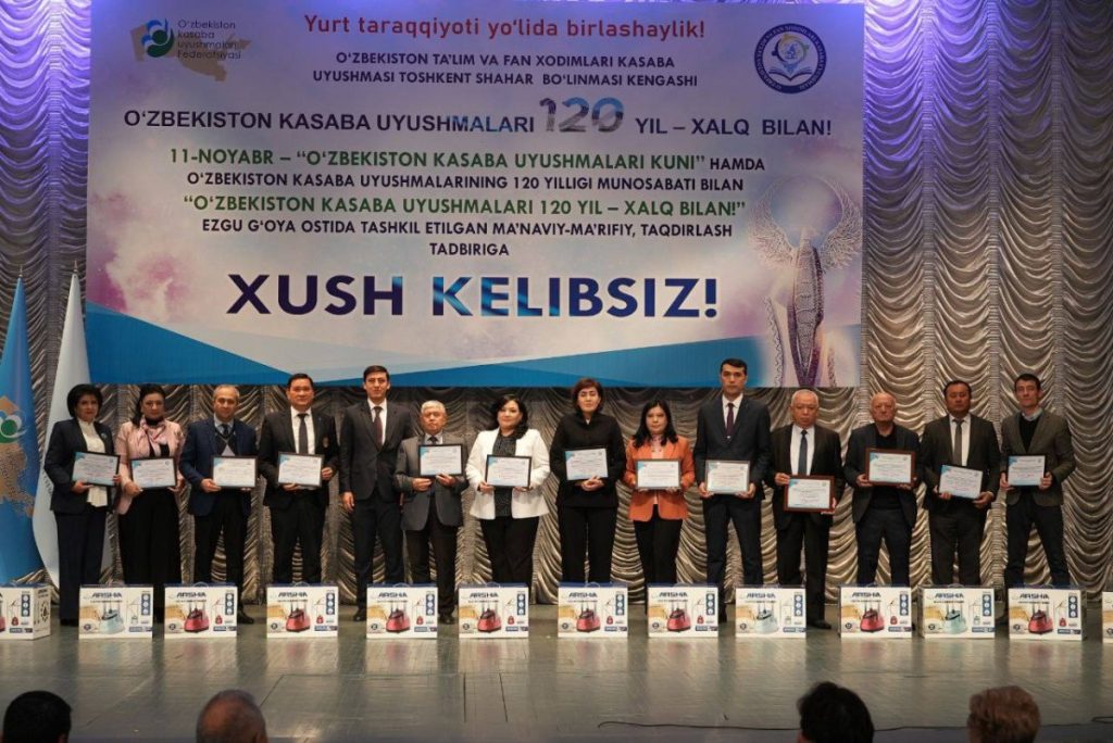 In honor of November 11 — “Uzbekistan Trade Unions Day” and the 120th anniversary of Uzbekistan’s trade union movement, the Tashkent City Council of the Trade Union of Education and Science Workers of Uzbekistan organized a spiritual and educational award ceremony under the motto “120 Years of Uzbekistan’s Trade Unions – Together with the People” at the Uzbek National Academic Drama Theatre.