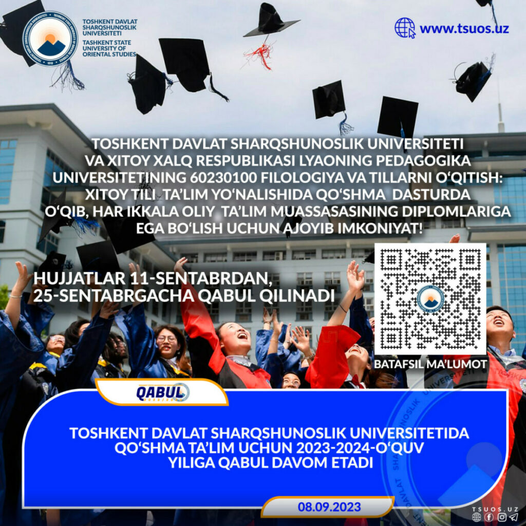 (Uzbek) Qo’chma ta’lim dasturi bo’yicha bakalavr bosqichiga qabul davom etadi