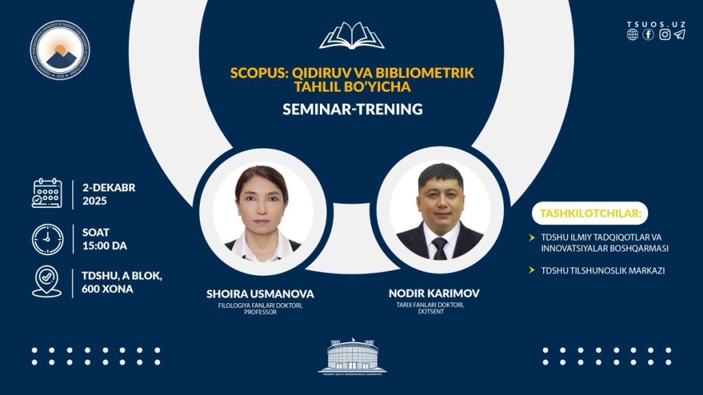 (Uzbek) Scopus: qidiruv va bibliometrik tahlil bo’yicha seminar-trening
