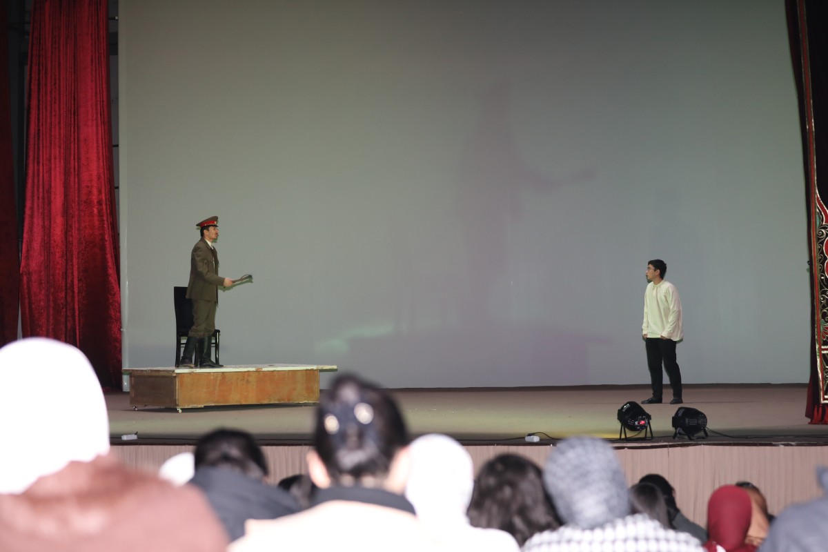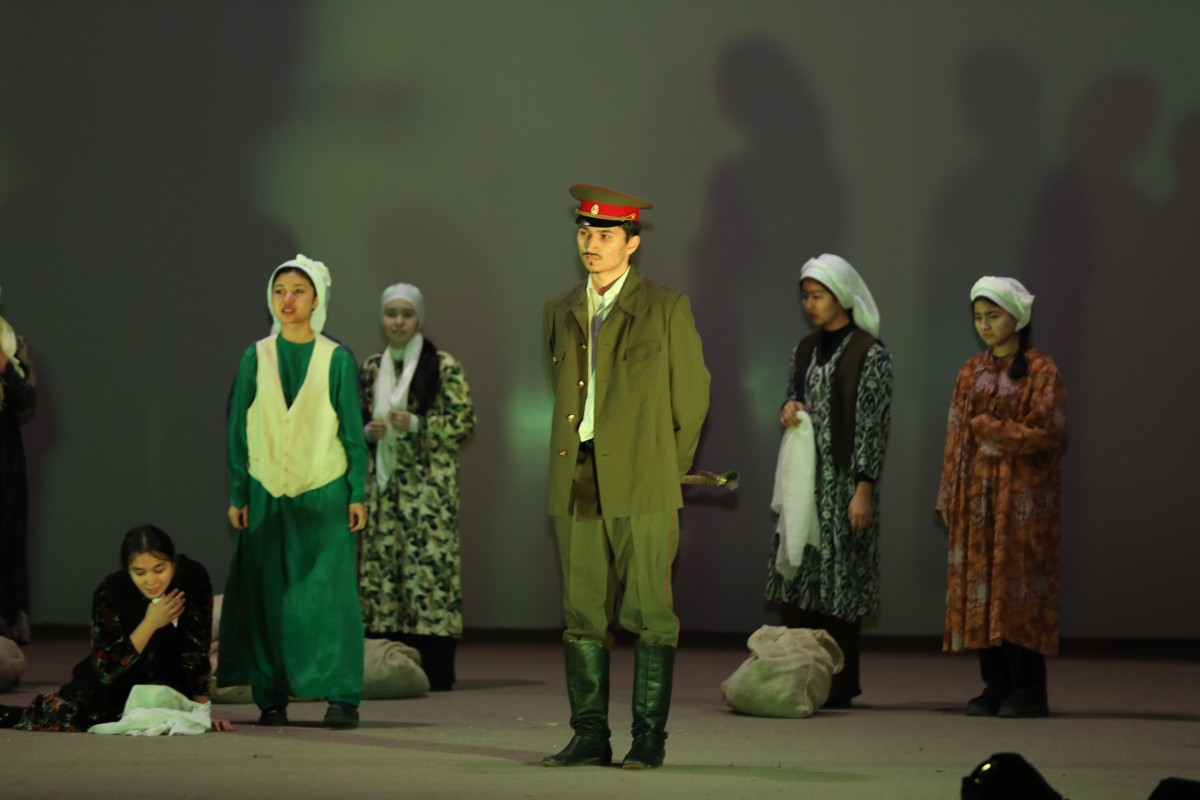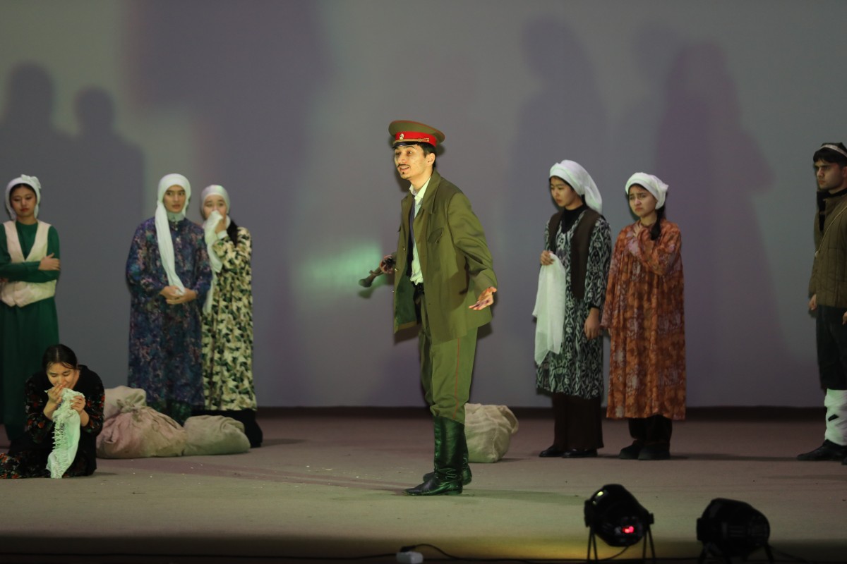 A performance of “People of War,” based on the work of renowned writer Nazar Eshonkul, was presented by the “Sharq Yulduzi” theatre troupe