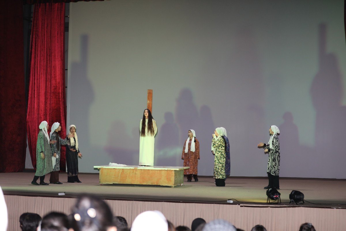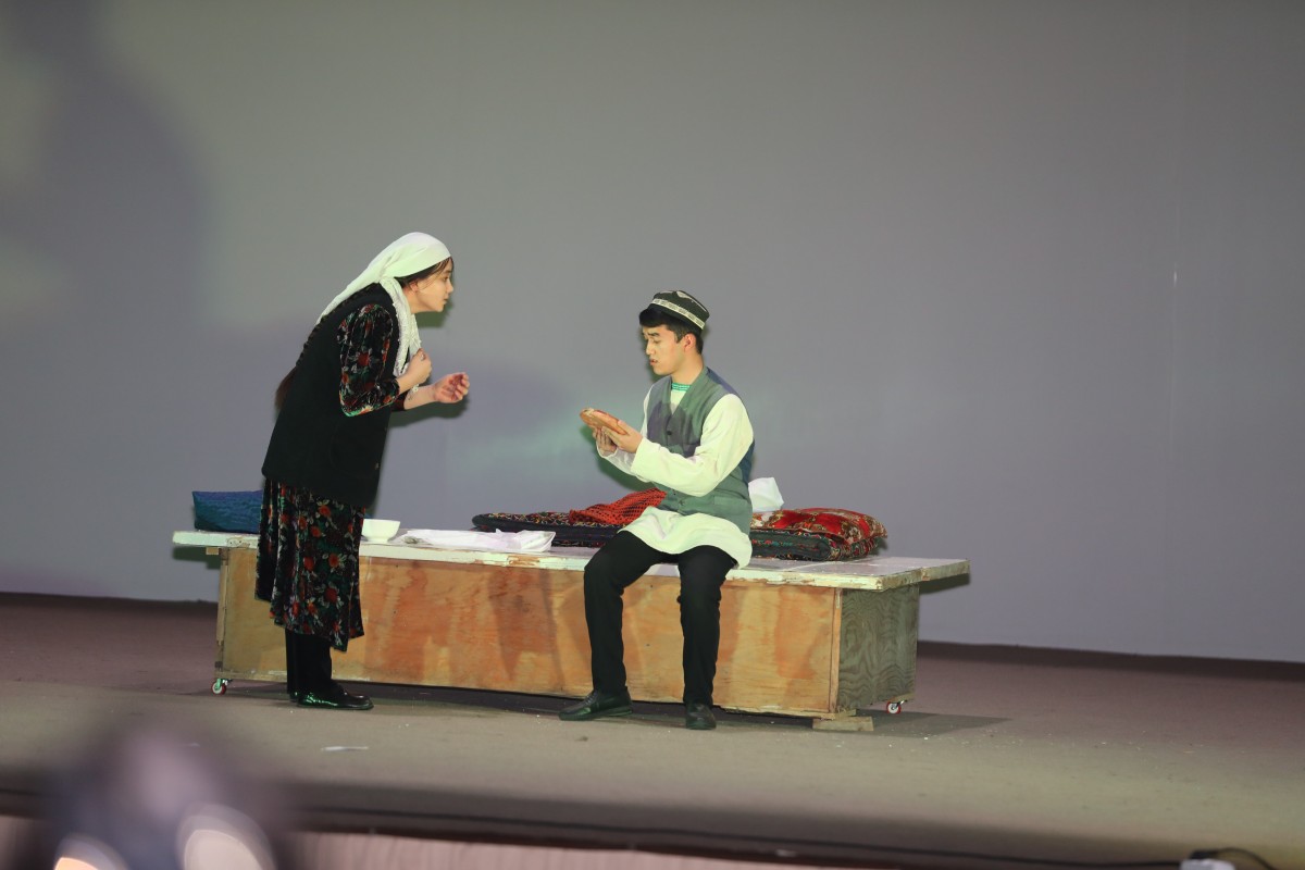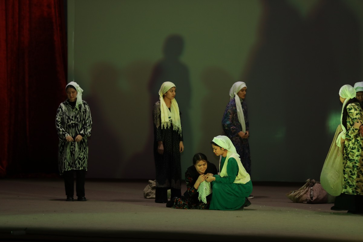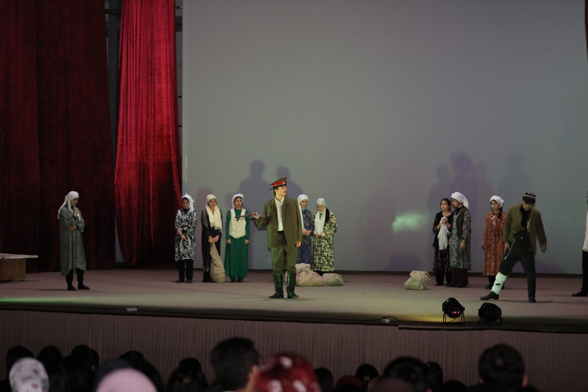 A performance of “People of War,” based on the work of renowned writer Nazar Eshonkul, was presented by the “Sharq Yulduzi” theatre troupe