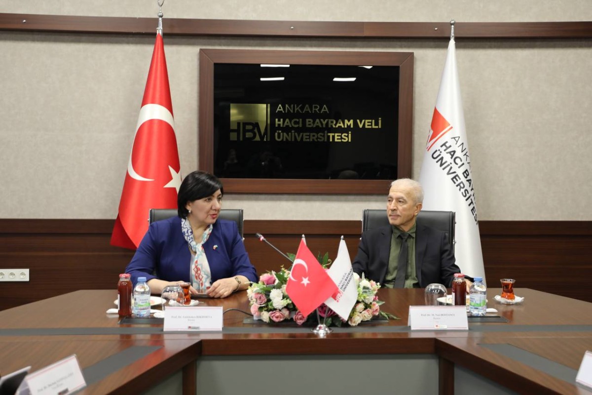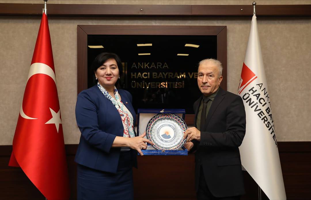 On October 20, a delegation from Tashkent State University of Oriental Studies (TSUOS) led by Rector Professor Gulchehra Rikhsieva held a meeting with Professor Dr. Mehmet Naci Bostancı, Rector of Ankara Hacı Bayram Veli University, as part of their official visit to Ankara, Türkiye.