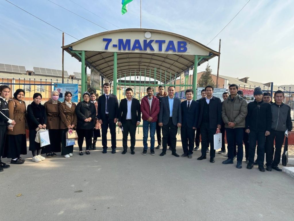 In order to implement the “Comprehensive Action Plan for Promoting Science among Youth,” approved by the Presidential Administration of the Republic of Uzbekistan on 13 February 2025 (No. 03-RA/1-2208/5), as well as the instructions of the Ministry of Higher Education, Science and Innovation dated 28 March 2025, the professors of the Departments of Foreign Economic Activity, Economics and Management, and Tourism of TSUOS organized a meeting with upper-grade and graduating students of Schools No. 3, 6, 7 in Yangiqo‘rg‘on District, Namangan Region.
