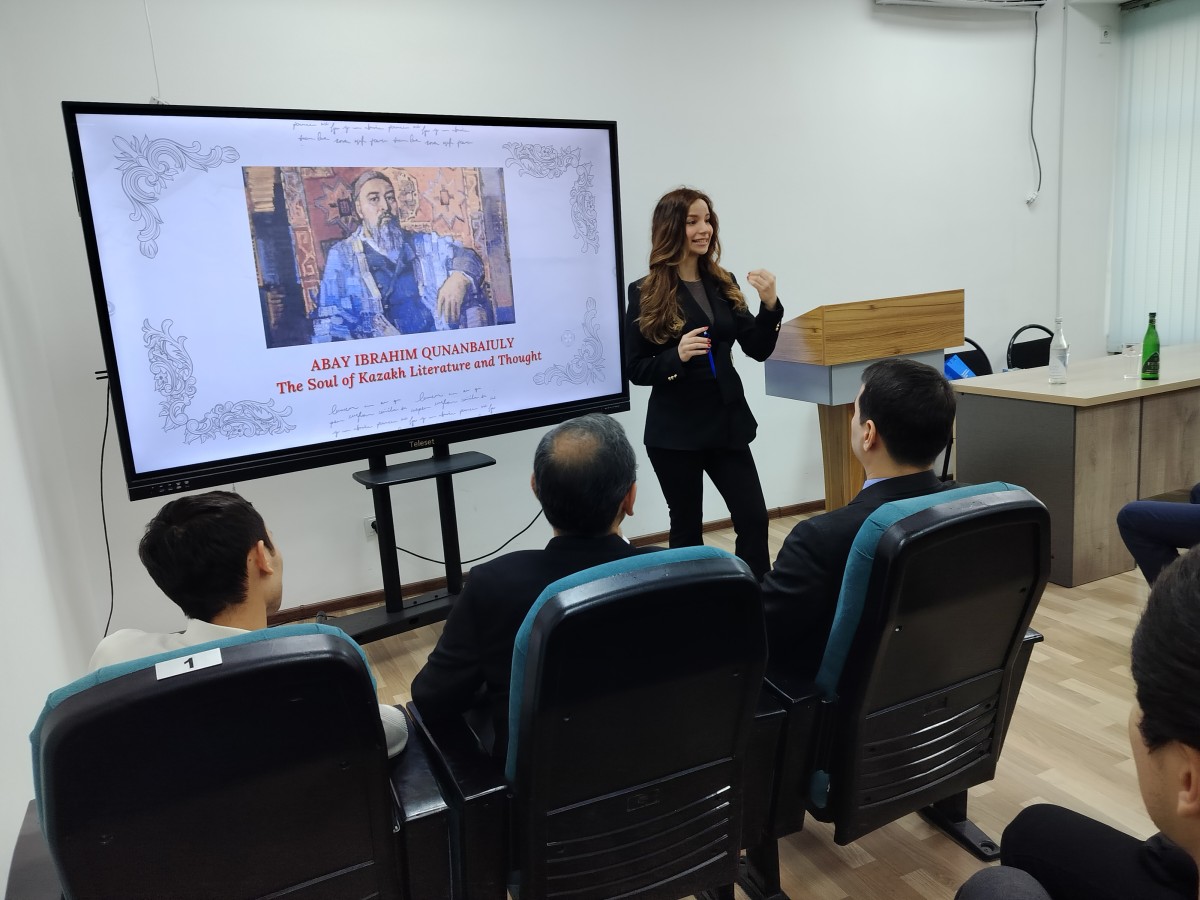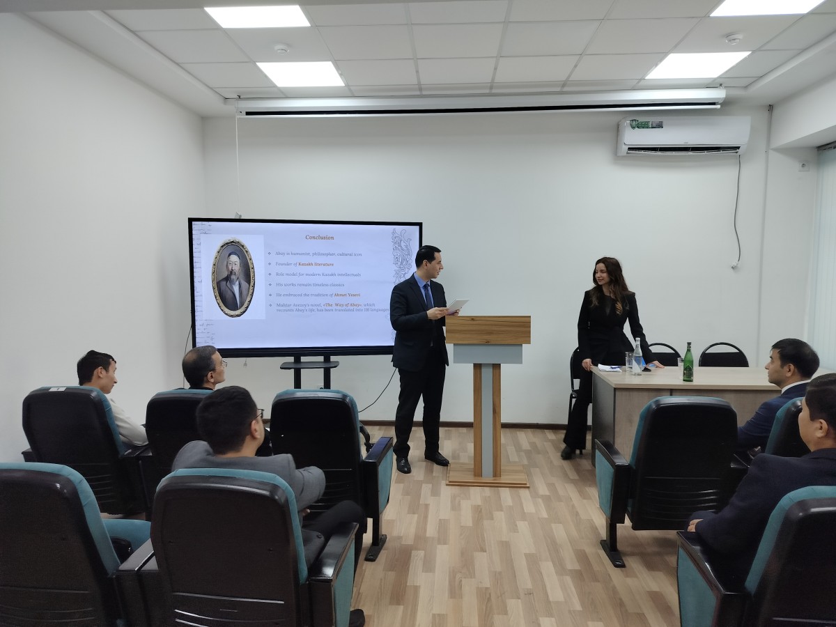 The lecture focused on analyzing the role of Abai’s legacy in contemporary research, his philosophical worldview, and his influence on the culture of related peoples.
