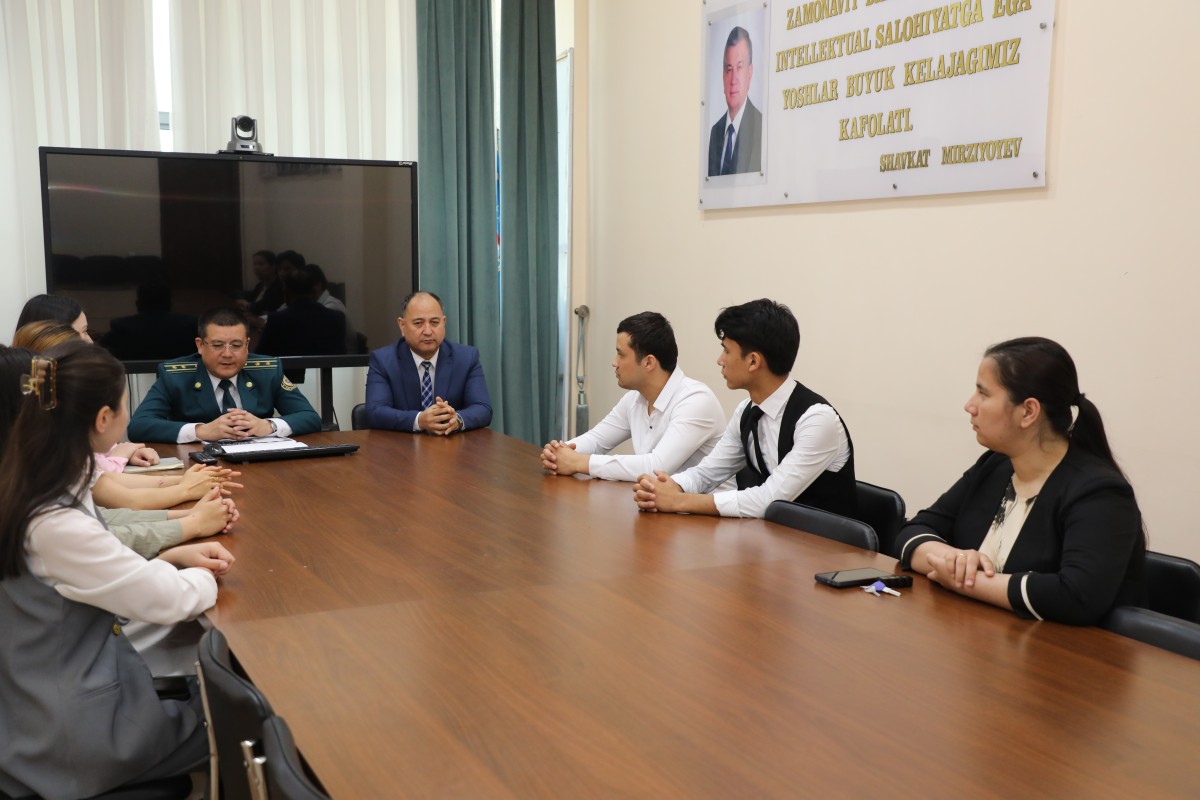 The event was attended by Anvarjon Boltabev, a master’s student at the Academy of the Ministry of Internal Affairs of the Republic of Uzbekistan and a lieutenant colonel, who provided detailed information on the causes of such offenses, preventive measures, and legal responsibilities established by law.