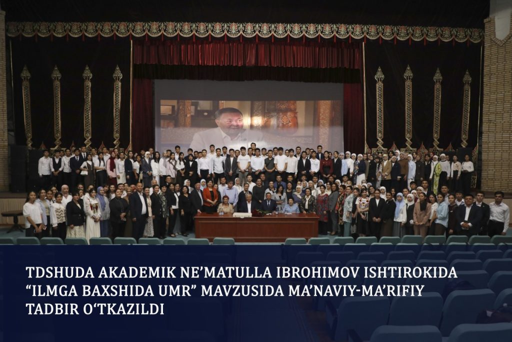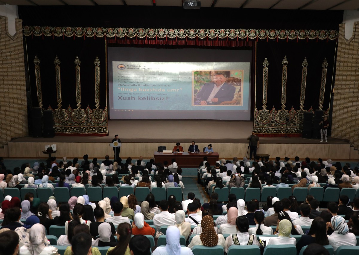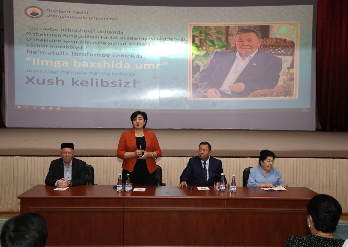 On September 26, 2025, a spiritual and educational event titled “Life Dedicated to Science” was held at the Tashkent State University of Oriental Studies as part of the “Three Generations Meeting” with the participation of Academician of the Academy of Sciences of the Republic of Uzbekistan, Honored Mentor of Youth of Uzbekistan Ne’matulla Ibrohimov.