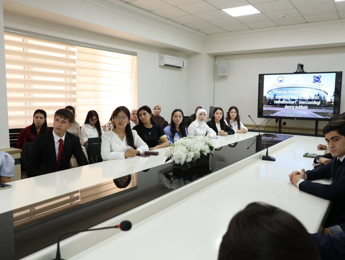 At the beginning of the meeting, a cooperation agreement was signed between the SCO Center for Public Diplomacy in Uzbekistan and the University. The agreement covers the organization of student internships at the Center, the joint holding of seminars and roundtables, as well as other academic and educational activities.