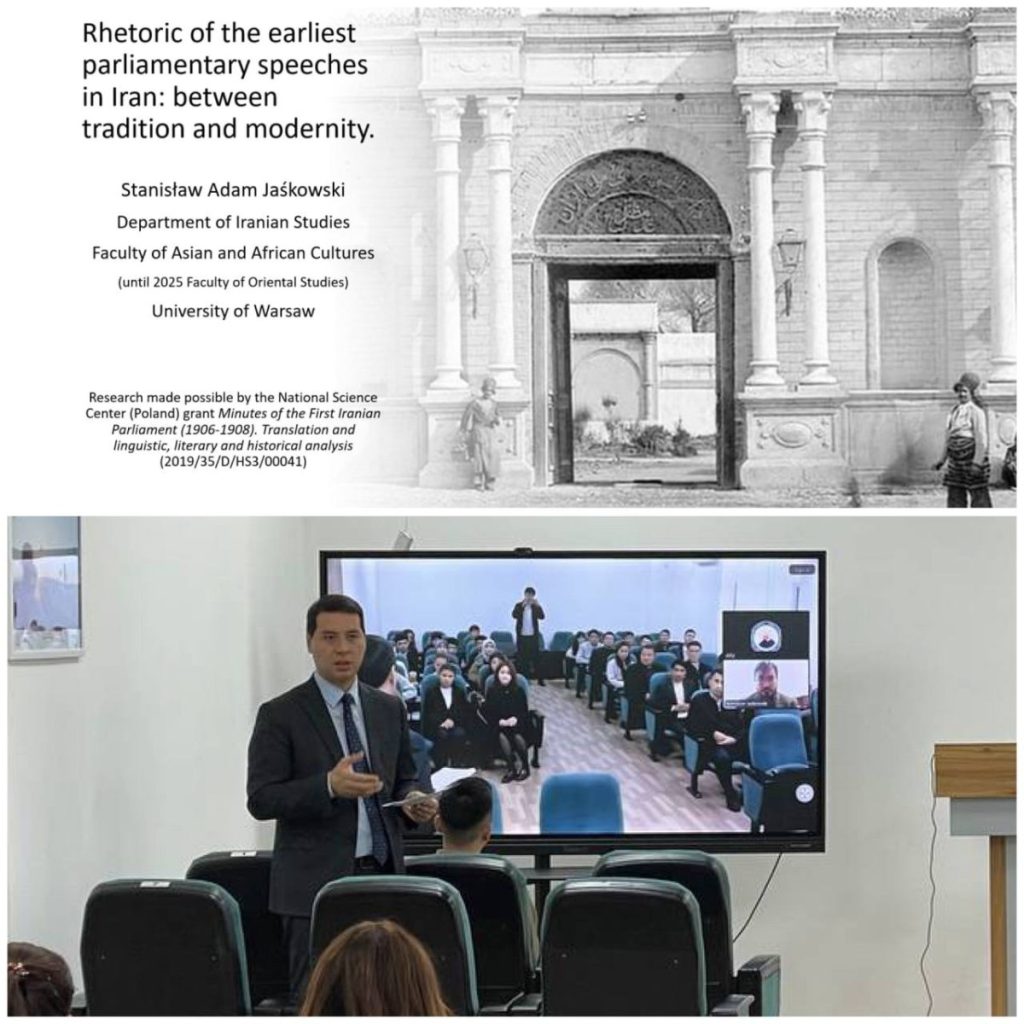 The seminar was conducted by Dr. Stanislav Adam Jaskowski (PhD), who delivered a lecture titled “Rhetoric of the Earliest Parliamentary Speeches in Iran: Between Tradition and Modernity.”