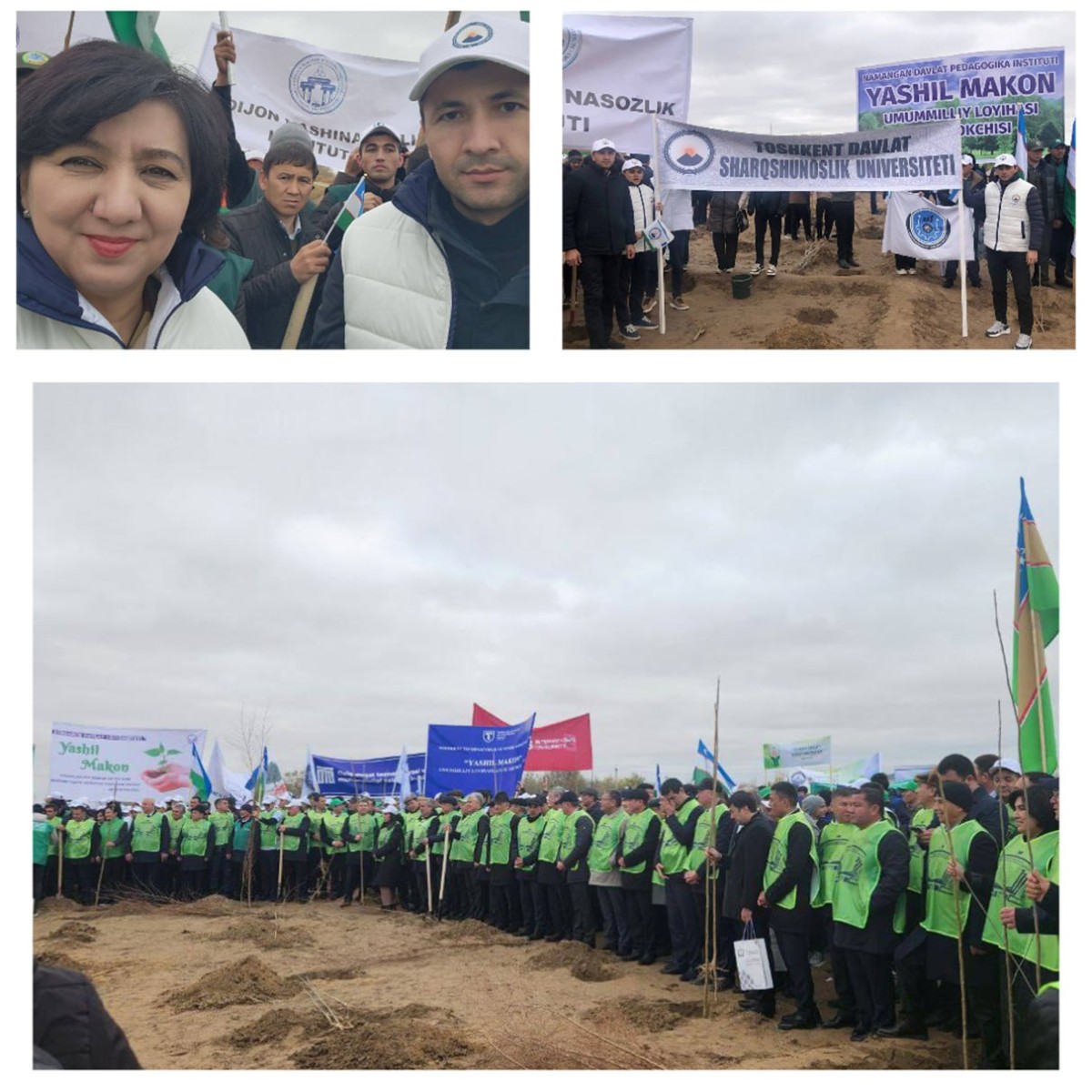 2024-yil 9-noyabr kuni Toshkent davlat sharqshunoslik universiteti rektori Gulchehra Rixsiyeva boshchiligida universitet vakillari va faol yoshlar guruhi Oliy ta’lim, fan va innovatsiyalar vazirligi tashabbusi bilan Qoraqalpog‘iston Respublikasining Nukus shahrida o‘tkazilgan “Yashil makon” umummilliy loyihasi doirasidagi ko‘chat ekish marafonida ishtirok etdilar.