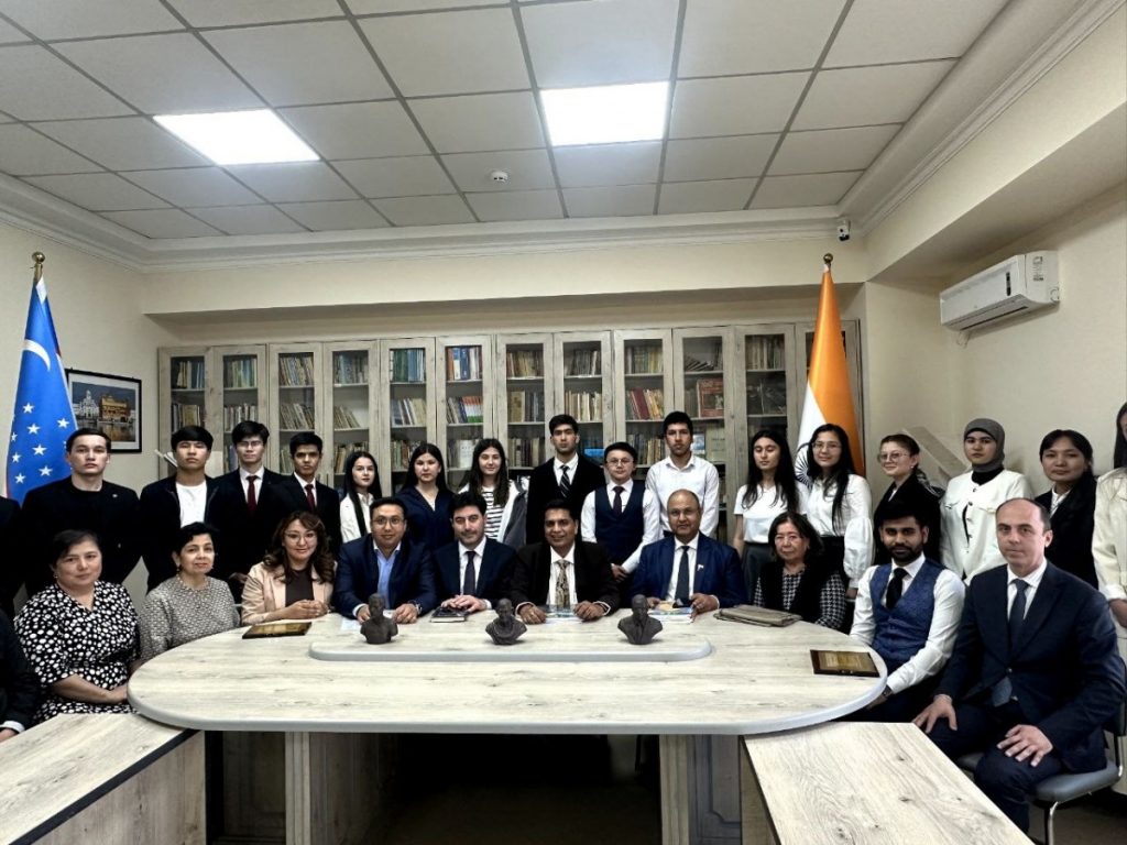 Tashrif doirasida professor Ramakant Dvivedi tomonidan “Hindiston va O‘zbekiston o‘rtasidagi xalqaro munosabatlar: tarix va istiqbollar” mavzusida ma’ruza qilindi.