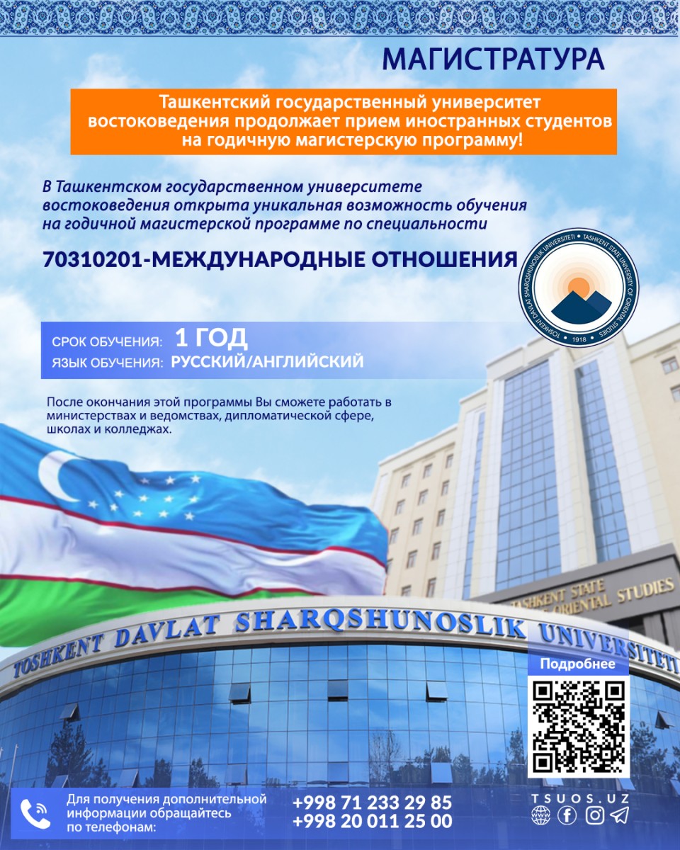 Ташкентский государственный университет востоковедения продолжает прием иностранных студентов на годичную магистерскую программу!