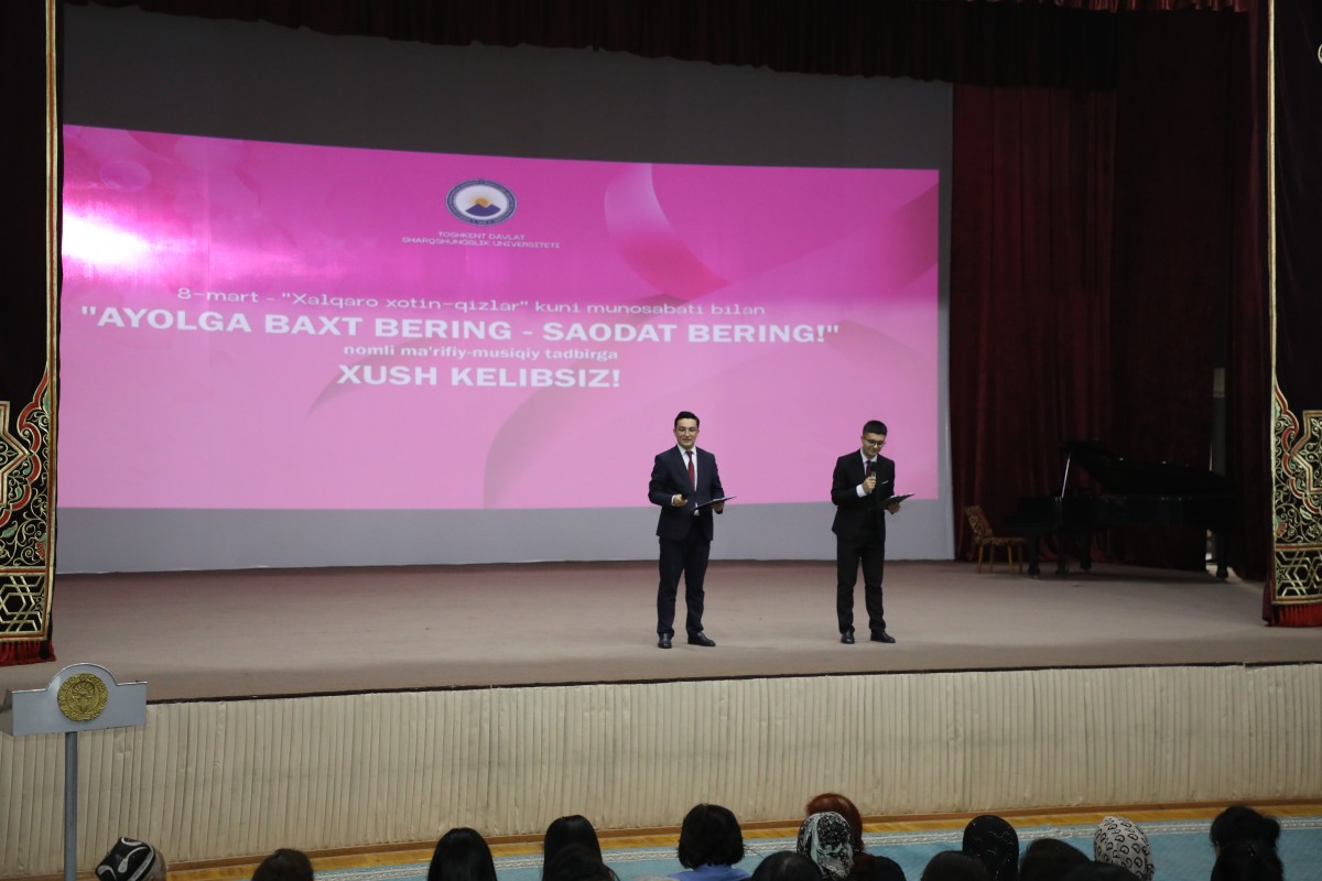 6 марта 2026 года в Ташкентском государственном университете востоковедения в честь Международного женского дня 8 марта состоялось просветительское и музыкальное мероприятие «Дарите женщинам счастье — дарите благополучие!».