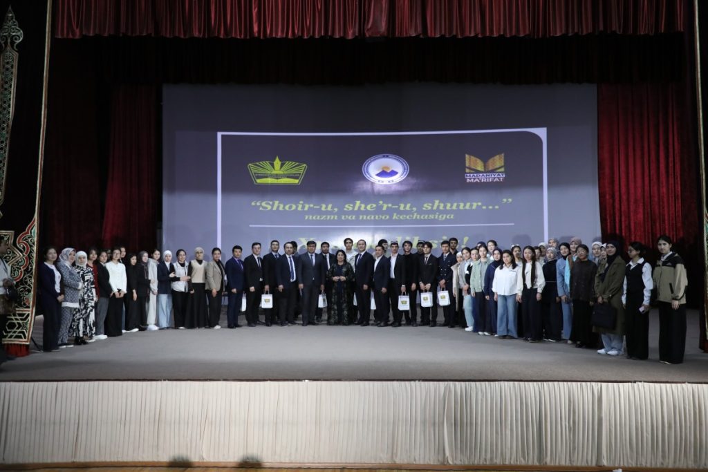 2026-yil 25-fevral kuni Toshkent davlat sharqshunoslik universitetida “Shoir-u she’r-u shuur” nomli nazm va navo kechasi tashkil etildi. Mazkur ma’naviy-ma’rifiy tadbir O‘zbekiston Yozuvchilar uyushmasi hamda Madaniyat va ma’rifat kanali hamkorligida o‘tkazildi.