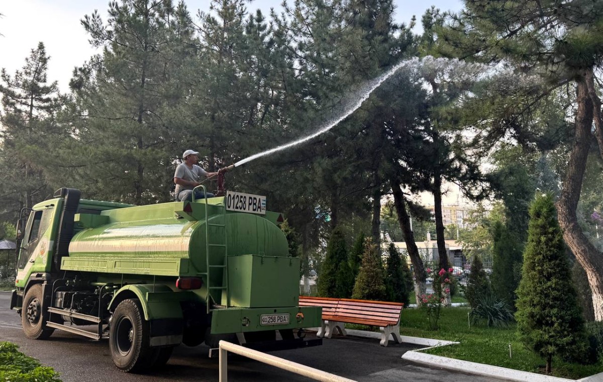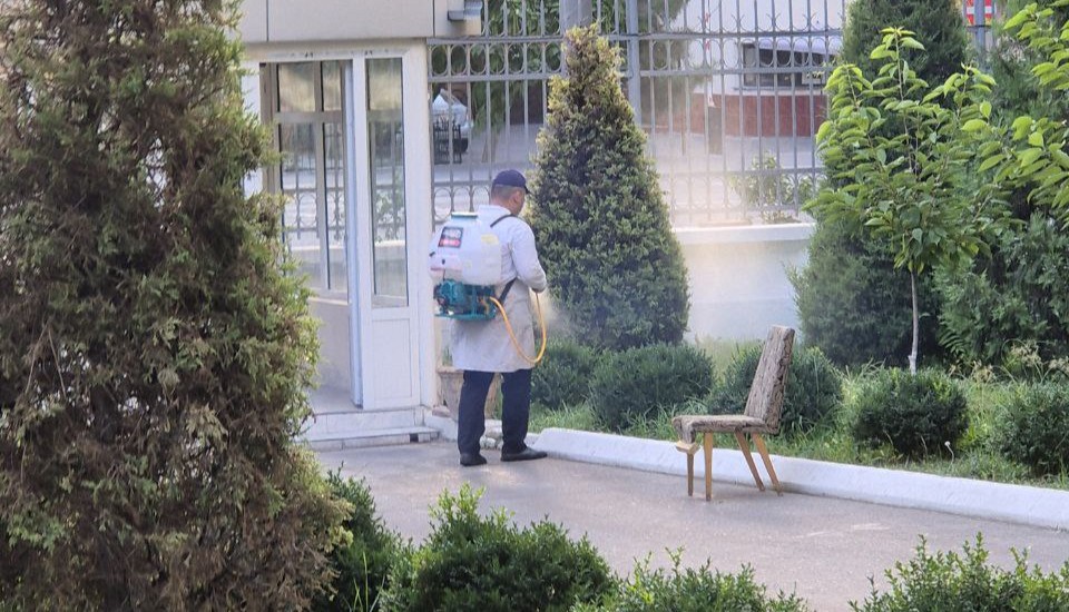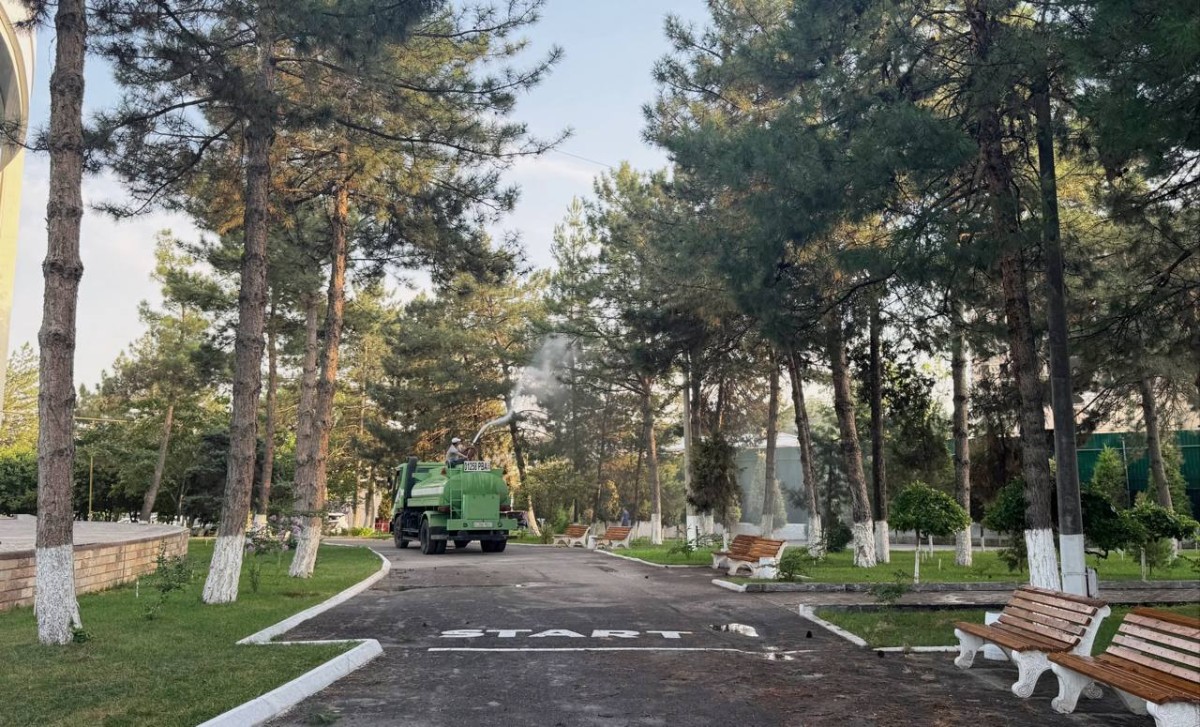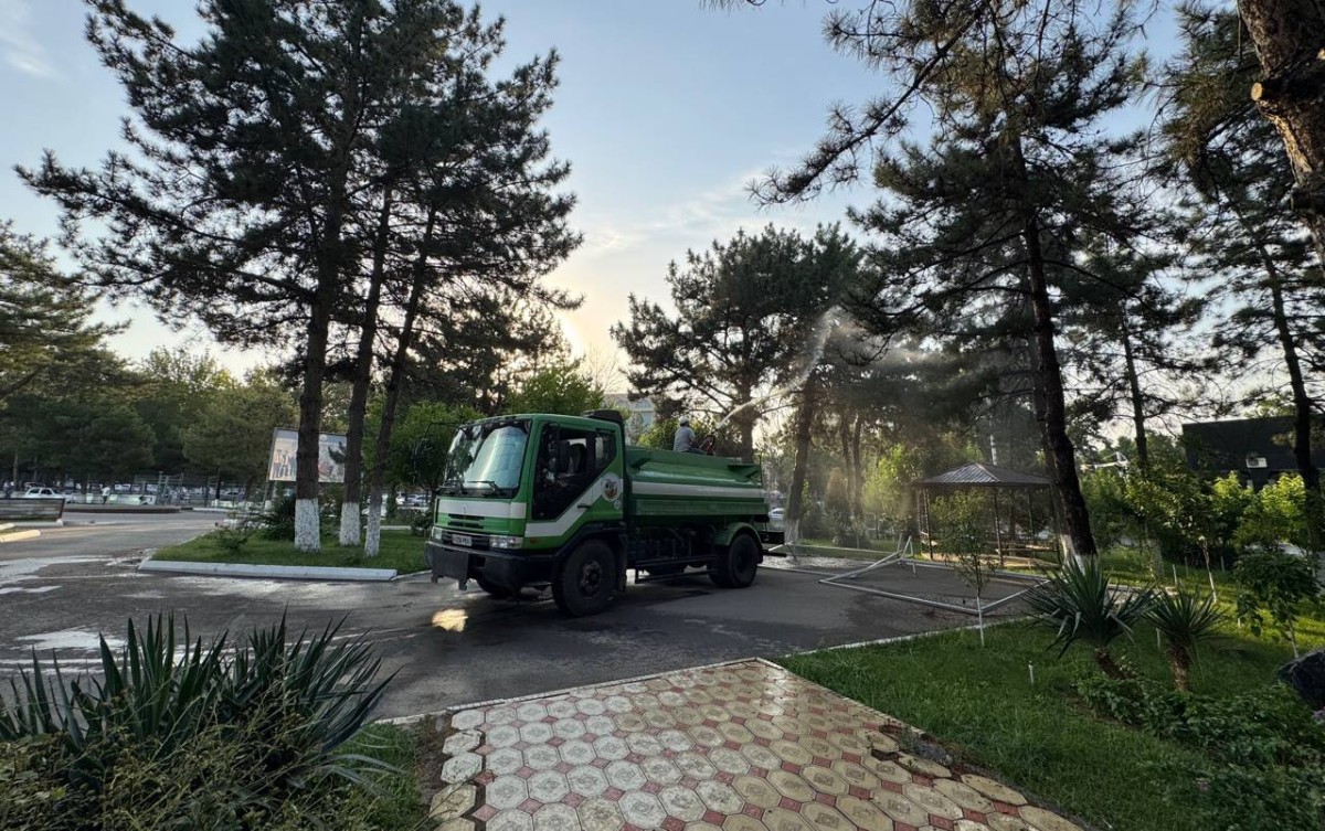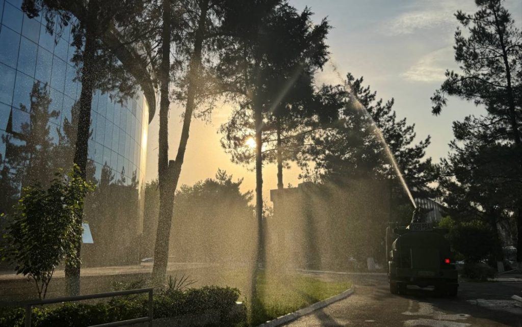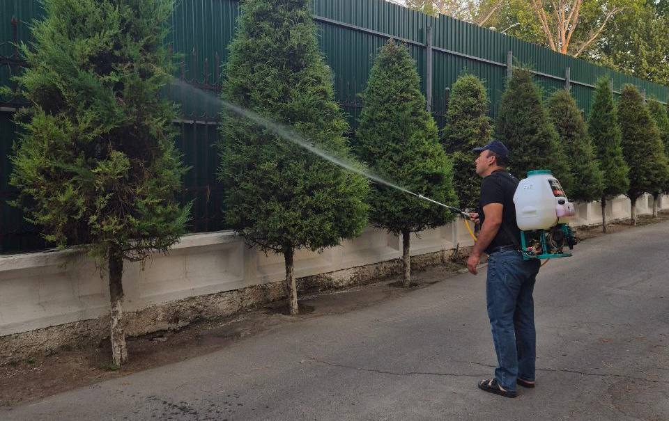 Tree washing and treatment works were carried out on the territory of the Tashkent State University of Oriental Studies