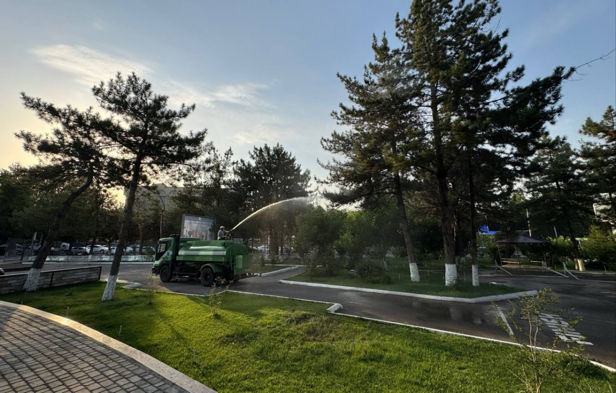 In hot weather, special protective agents were applied to prevent various diseases and to ensure the healthy growth of the trees. These measures contribute to further improving the university campus, preserving green areas, and creating a favorable ecological environment for students.