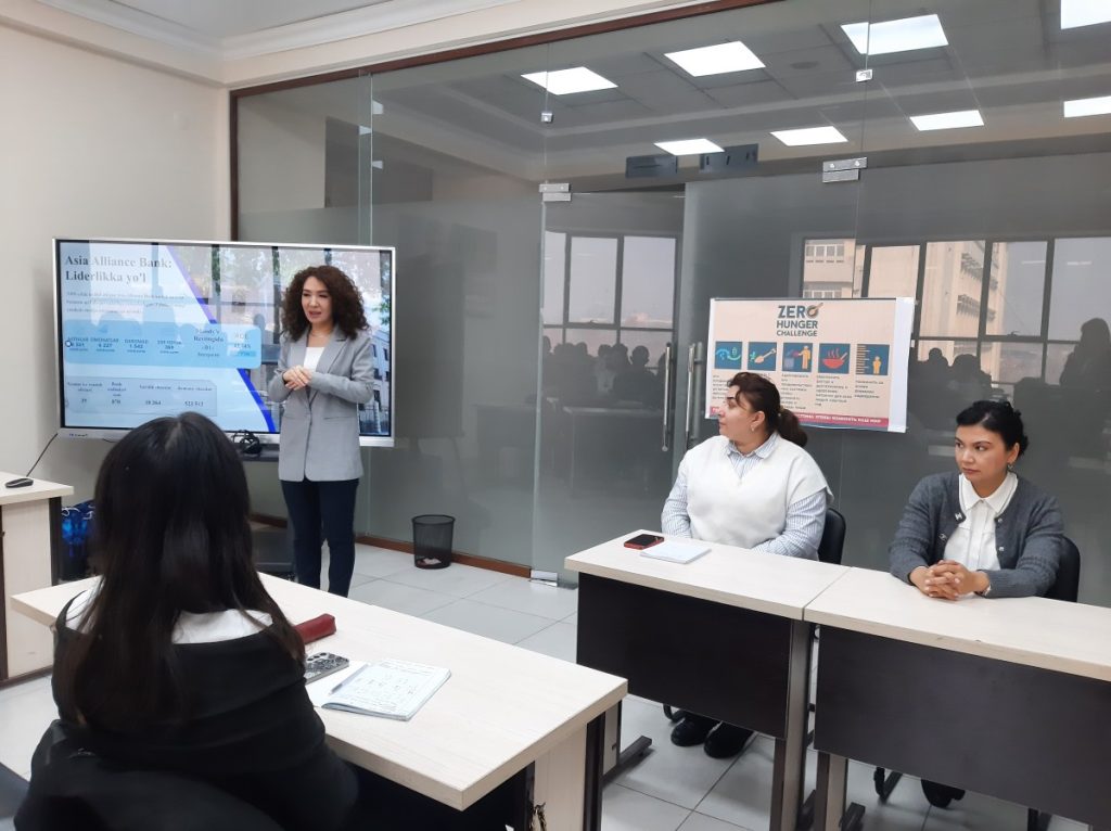 Uchrashuv davomida talabalarga yosh mutaxassislar uchun mo‘ljallangan o‘quv va amaliyot dasturlari, bankda kadrlar tayyorlash va rivojlantirish mexanizmlari haqida batafsil ma’lumot berildi. Shuningdek, “Asia Alliance Bank” ATBda amalga oshirilgan rebrending jarayoni, bankning yangilangan g‘oyasi, missiyasi va korporativ qadriyatlari taqdim etildi.