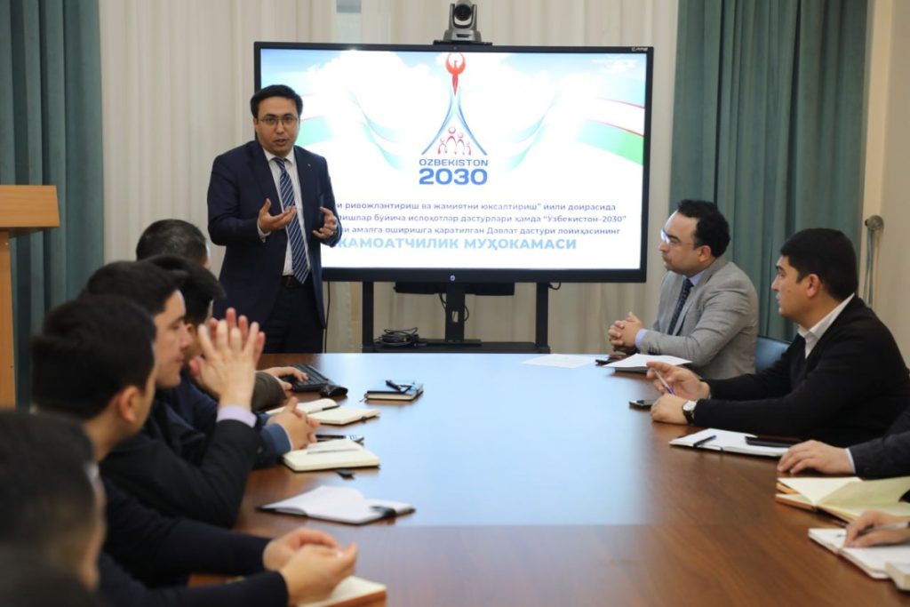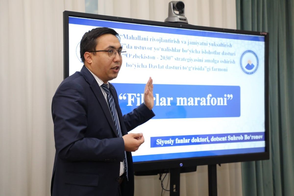 2026-yil 6-fevral kuni Toshkent davlat sharqshunoslik universitetida “Mahallani rivojlantirish va jamiyatni yuksaltirish yili” da ustuvor yo‘nalishlar bo’yicha islohotlar dasturlari hamda “O‘zbekiston – 2030” strategiyasini amalga oshirish bo‘yicha Davlat dasturi to’g’risida” gi farmon loyihasining keng jamoatchilik muhokamasini va targ‘ibotini tashkil qilish maqsadida Davlat dasturi loyihalari yuzasidan “Fikrlar marafoni” tashkil etildi.