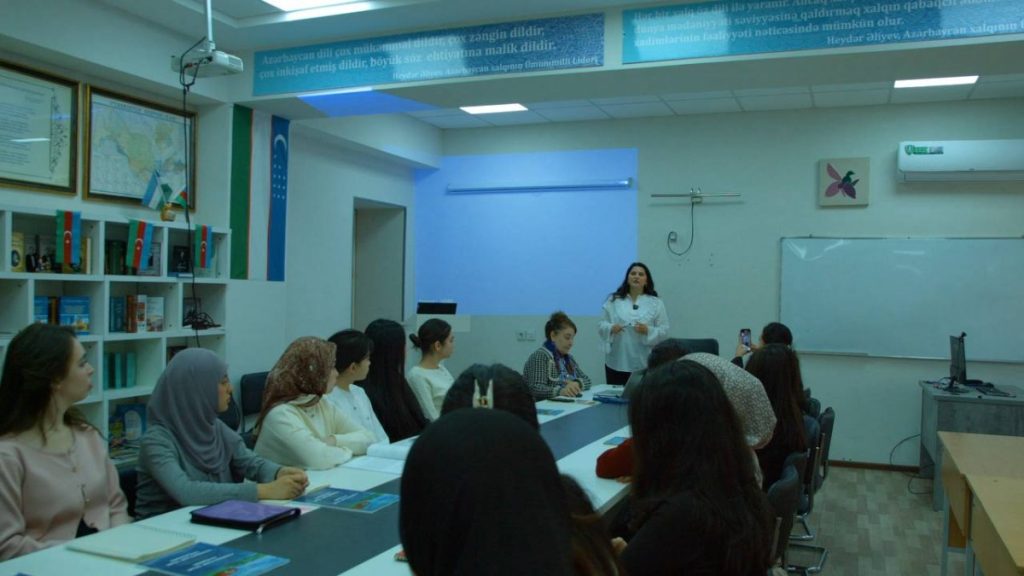 TDSHUda Haydar Aliyev nomidagi Ozarbayjon madaniyat markazi tomonidan amalga oshirilayotgan ilmiy-ma’rifiy loyiha doirasida ozarbayjon tilini o‘qitish, metodik yondashuvlarni takomillashtirish yuzasidan seminarlar o’tkazildi