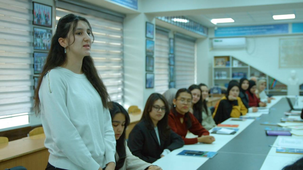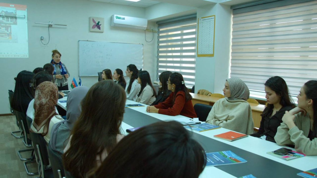 Dars jarayonida loyiha doirasida tashrif buyurgan tajribali mutaxassislar — Shafiqa Tahirova va Türkan Ömərova — ozarbayjon tilining o‘qitilishiga oid taqdimotlar namoyish etib, o‘zlarining zamonaviy metodik usullarini, talabalarning nutq va eshitish ko‘nikmalarini rivojlantirishga qaratilgan samarali amaliy mashqlarini tanishtirdilar. Ular til o‘rganishda madaniy kontekstning o‘rni, til muhitini yaratishning ahamiyati hamda o‘quv jarayonida interaktiv yondashuvlarning o‘rni haqida batafsil fikr bildirdilar.