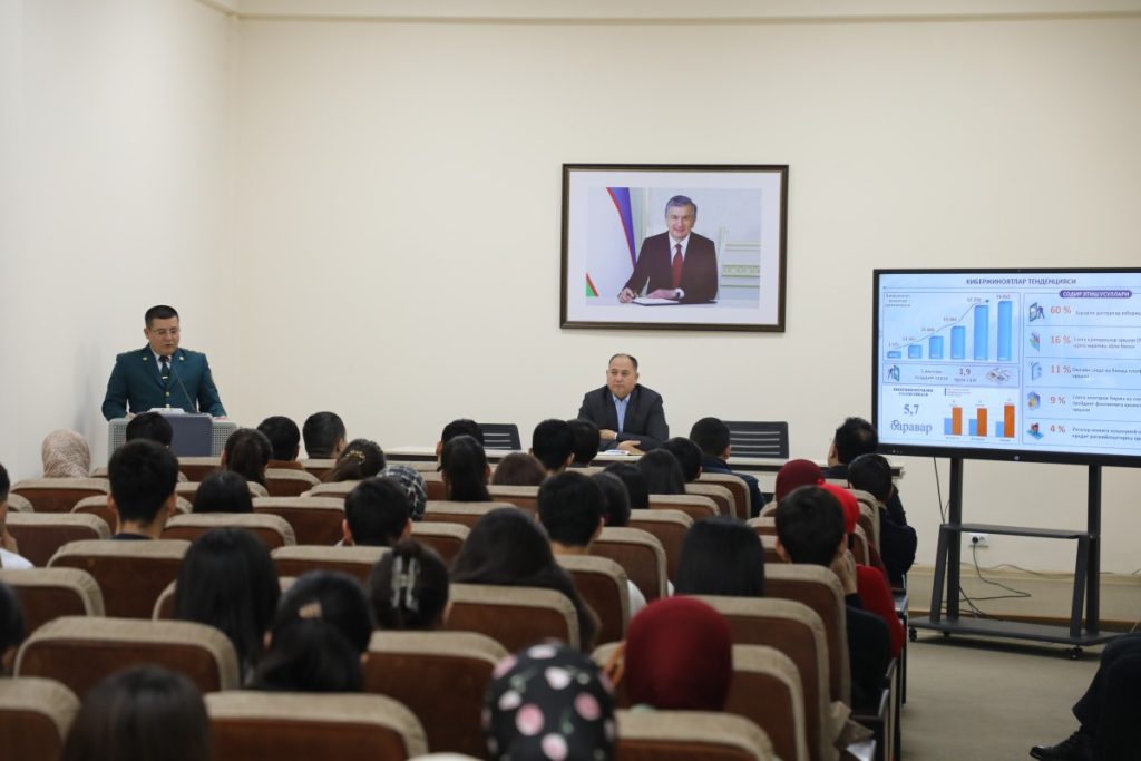 Shuningdek, uchrashuvda talabalar va professor-o‘qituvchilarga internet va ijtimoiy tarmoqlardan xavfsiz foydalanish, shaxsiy ma’lumotlarni himoyalash, firibgarlik holatlaridan ogoh bo‘lish bo‘yicha amaliy tavsiyalar berildi. Tadbir savol-javoblar bilan yakunlandi.