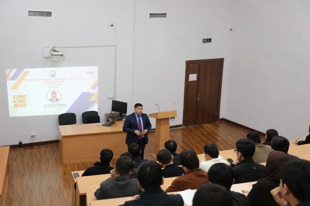 2026-yil 4-mart kuni Toshkent davlat sharqshunoslik universitetida DSc, dotsent Nodir Karimov tomonidan “Markaziy Osiyoning IX–XV asrlar tarixiga oid yozma manbalari” (arab tilida) mavzusida ochiq dars tashkil etildi.
