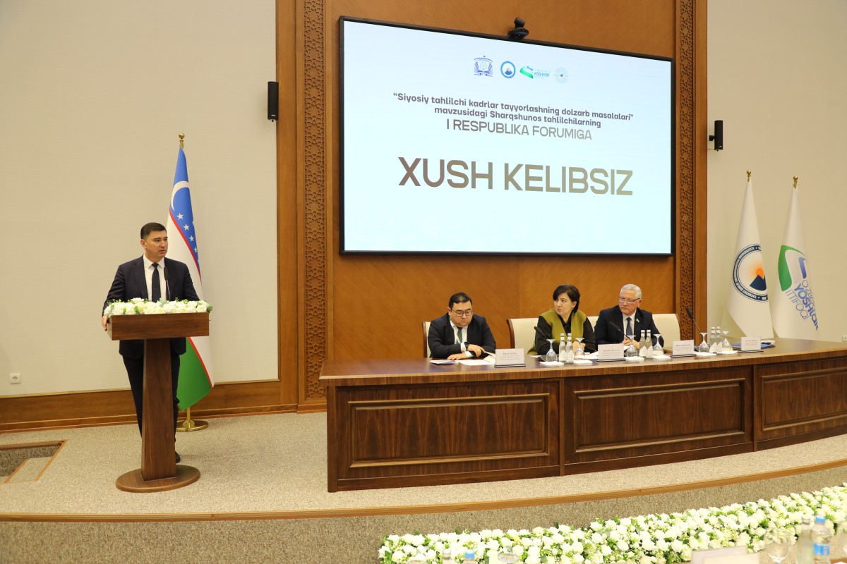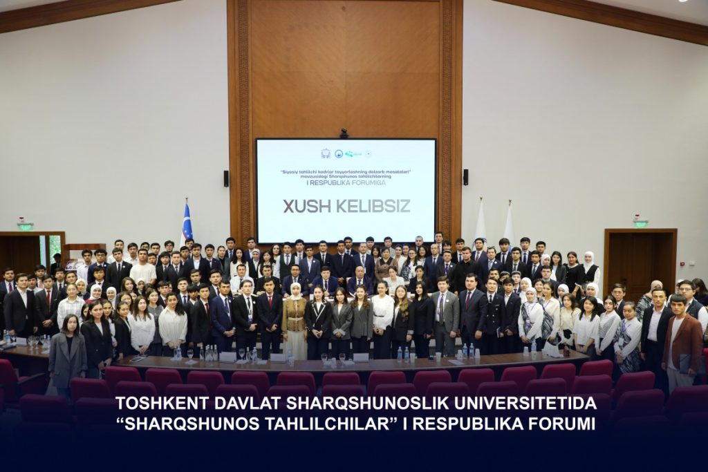 2026-yil 25-aprel kuni Toshkent davlat sharqshunoslik universitetida “Sharqshunos tahlilchilar” intellektual klubi hamda O‘zbekiston Yoshlar Ittifoqi hamkorligida “Siyosiy tahlilchi kadrlar tayyorlashning dolzarb masalalari” mavzusida Sharqshunos tahlilchilarning I Respublika forumi bo‘lib o‘tdi.