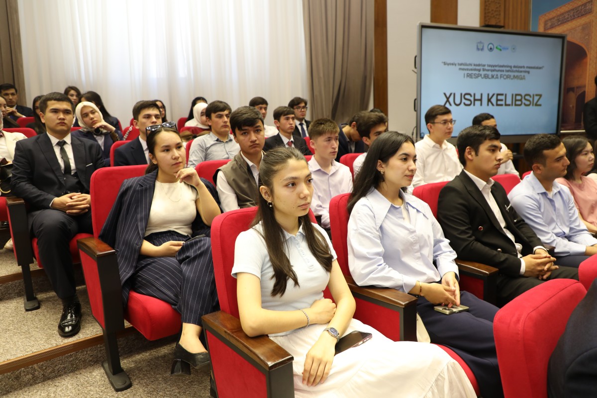 Mazkur forum siyosiy tahlil yo‘nalishida kadrlar tayyorlashning bugungi holati, mavjud muammolar va istiqbolli yo‘nalishlarni muhokama qilishga bag‘ishlandi. Tadbirda O’zbekiston Yoshlar ittifoqi Markaziy Kengashi raisi Xayrulla Sattorov, Oliy Majlis Senati Xalqaro munosabatlar, tashqi iqtisodiy aloqalar, xorijiy investitsiyalar va turizm masalalari qo‘mitasi raisi o‘rinbosari Odiljon Mamatkarimov, O’zbekiston Respublikasi Prezidenti huzuridagi Strategik va mintaqalararo tadqiqotlar instituti Bosh ilmiy xodimi Bekzod Ochilov, shuningdek, yetakchi mutaxassislar, siyosatshunoslar, professor-o‘qituvchilar hamda talabalar faol ishtirok etdi.
