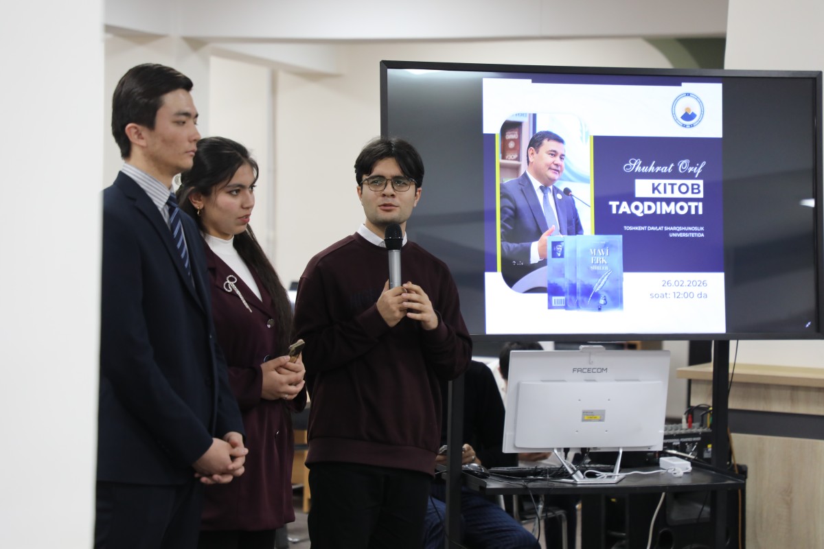 2026-yil 26-fevral kuni Toshkent davlat sharqshunoslik universitetiga iste’dodli ijodkor, O‘zbekiston Yozuvchilar uyushmasi a’zosi, shoir Shuhrat Orif tashrif buyurdi.