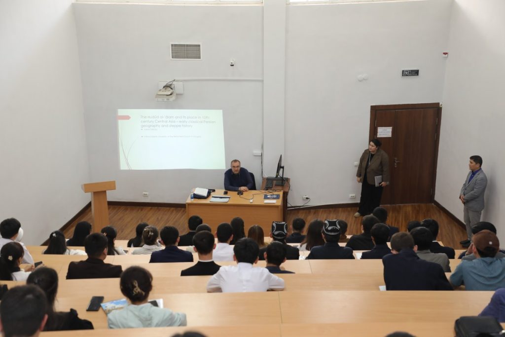 Dastlab, Erasmus+ ICM almashinuv dasturi doirasida tashrif buyurgan xorijiy olim, Miklós Sárközy tomonidan “Ḥudūd al-ʿālam va uning X asr Markaziy Osiyodagi o‘rni: ilk klassik fors geografiyasi va dasht tarixi” mavzusida ma’ruza o‘tkazildi.