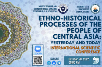 Toshkent davlat sharqshunoslik universitetida 2022 yil oktyabr oyida “Markaziy Osiyo xalqlarining etno-tarixiy jarayonlari” mavzusida ilk marotaba Xalqaro ilmiy-amaliy konferensiya o‘tkazish rejalashtirilgan. Konferensiya maqsadi va vazifalari: – Xalqaro konferensiya o‘z oldiga Markaziy Osiyo xalqlarining siyosiy, ijtimoiy, madaniy, ma’naviy o‘tmishiga oid muammolarning tadqiqi, targ‘ibi bi...