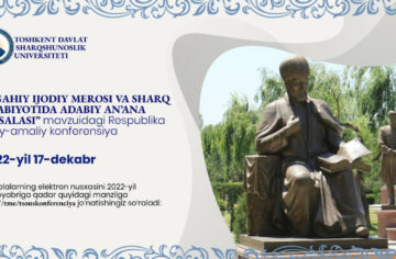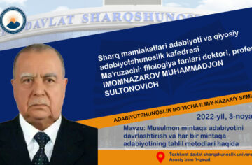 TDSHU Sharq mamlakatlari adabiyoti va qiyosiy adabiyotshunoslik kafedrasi Maʼruzachi: filologiya fanlari doktori, professor IMOMNAZAROV MUHAMMADJON SULTONOVICH Mavzu: Musulmon mintaqa adabiyotini davrlashtirish va har bir mintaqa adabiyotining tahlil metodlari haqida Sanasi: 2022-yil, 3-noyabr,13:00 da Manzil: Toshkent davlat sharqshunoslik universiteti, asosiy...