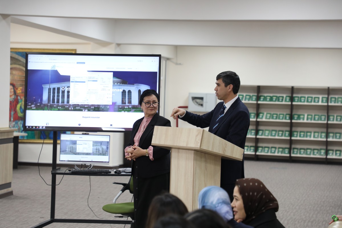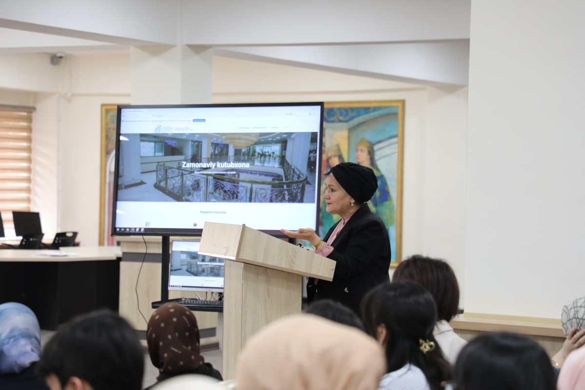 Seminarda EBSCO, Springer, ProQuest, PressReader, Web of Science, De Gruyter va boshqa nufuzli xalqaro elektron bazalardan foydalanish imkoniyatlari bilan tanishtirildi.